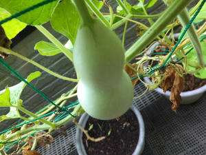 昨日、すべてのヒョウタンを収穫したつもりでいたが、まだ5個程度実がついていることがわかった。葉の陰に隠れていたため分からなかった。