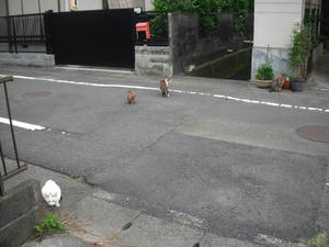 今朝も、家の外には、3匹の猫が道路に寝そべっている。