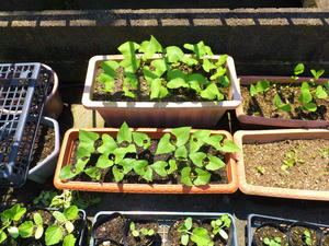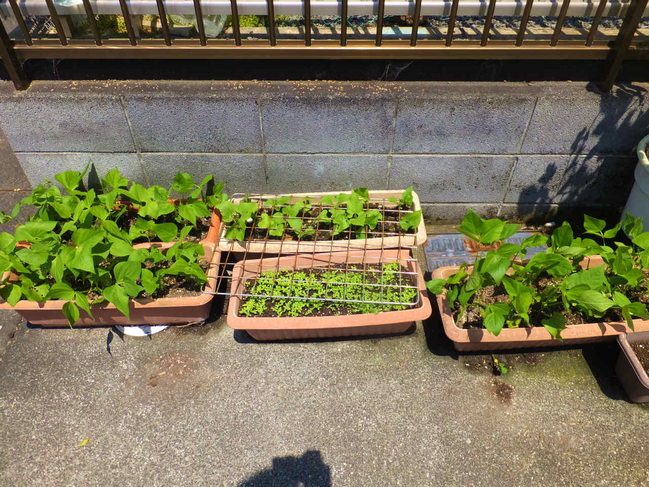 先週の土曜日にプランターにインゲンと大豆と青ネギの種をまいた。