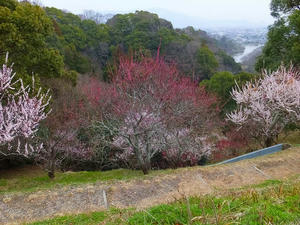 2月中は、赤みが強いピンク色の花が主流であったが、今日は淡いピンク色の花が真っ盛りであった。
