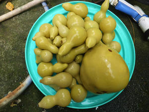 ゴムの手袋をして、ギンナンの周りの実を取り去ってギンナンを取り出し天日で乾燥させた。