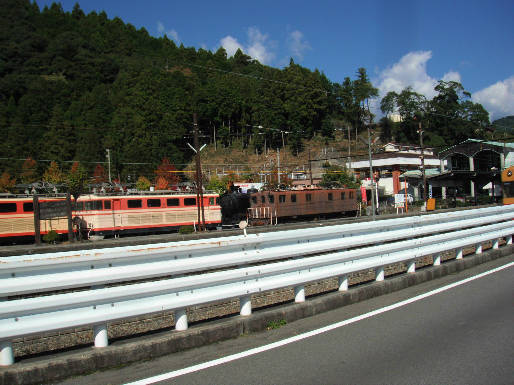 途中の千頭駅にはレトロな電車がたくさん停車していた。