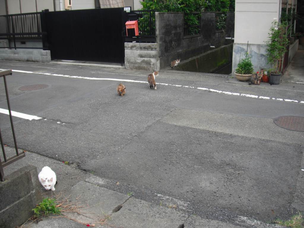 自分の書斎の窓から外を眺め、眼の中に写り込むネコの数は、ざっと数えて12匹。道路での寝そべるネコ、屋根の上で遊ぶネコ、木に登っているネコ、車の下で遊ぶネコ、まだ子どものネコ等様々である。見える範囲でこれだけのネコがいる。見えない部分にはもっとたくさんのネコがいるはずである。
