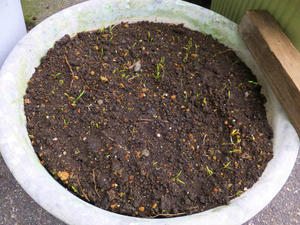それ用に開けてあったプランターに植える分がなくなってしまったので、種を蒔いたのであった。