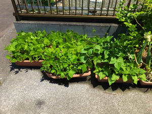 夏野菜の成長2014/04/26先週発芽したインゲン、大豆は大きくなってきている。