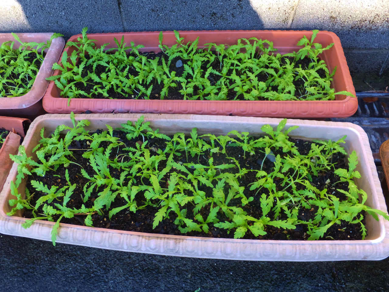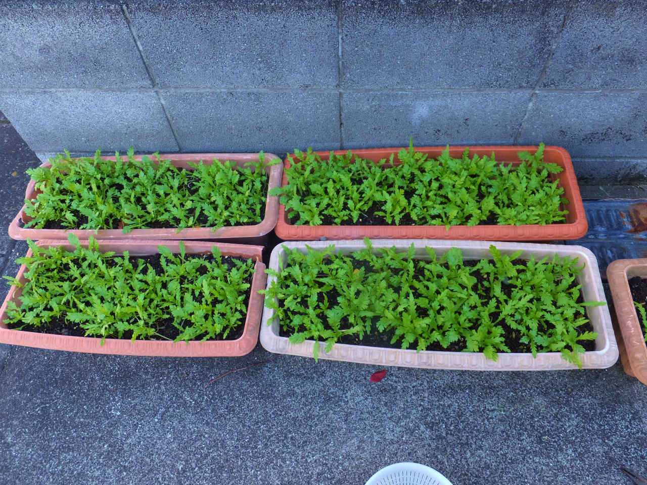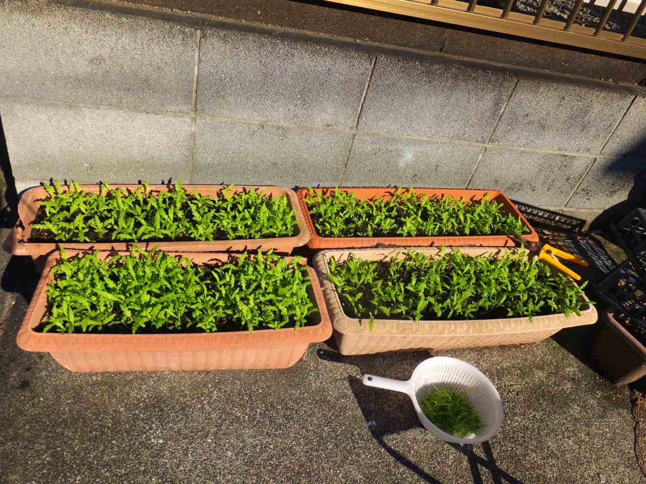 これは、葉っぱをお浸しして食べるために蒔いたものである。