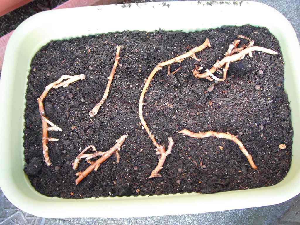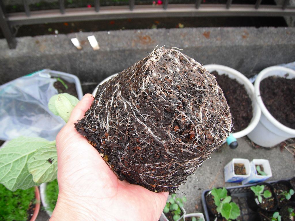 小さな鉢に植えたものは、移植時に深めに植え替えることにする。