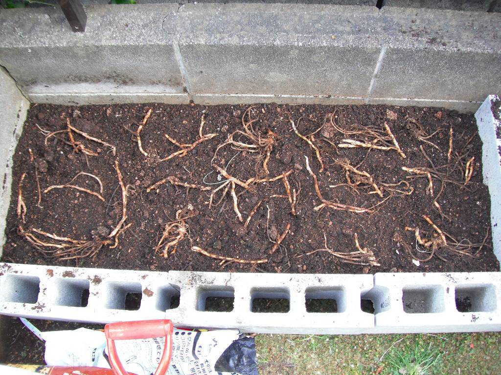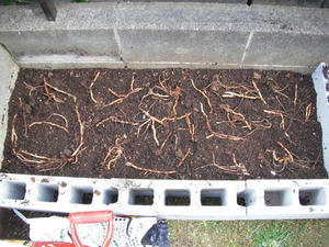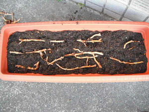 並べた後は土をかぶせて、平らにならして終わりである。