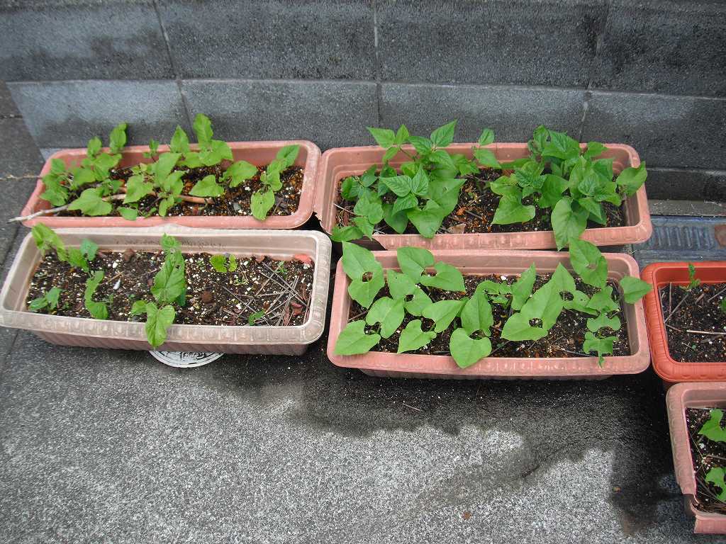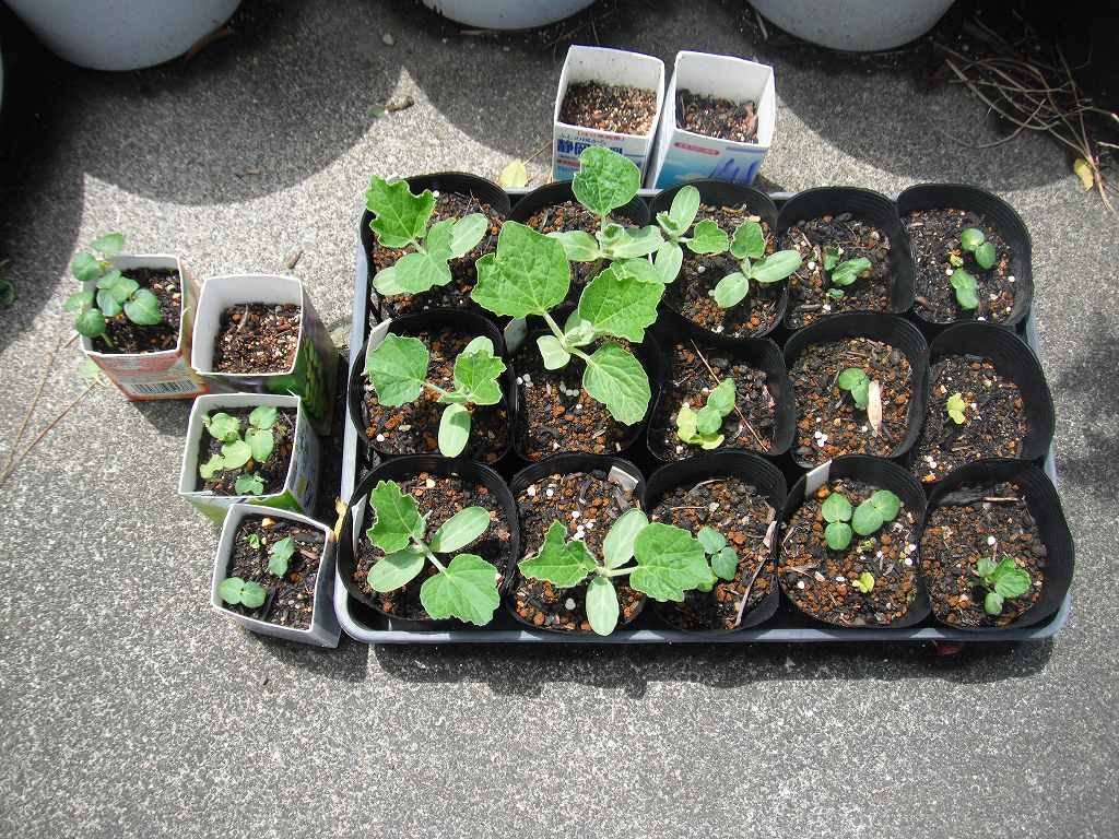 まだ苗が小さいので、よく日が当たるところで管理するが、つるが伸びてきたら設置場所に移動をして本格的な栽培開始である。 -