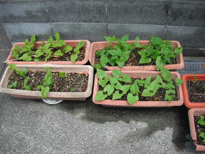 プランターに植えるのは、毎年インゲンと大豆の2種類。