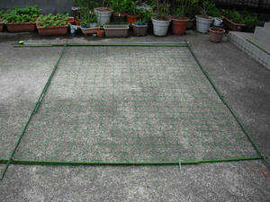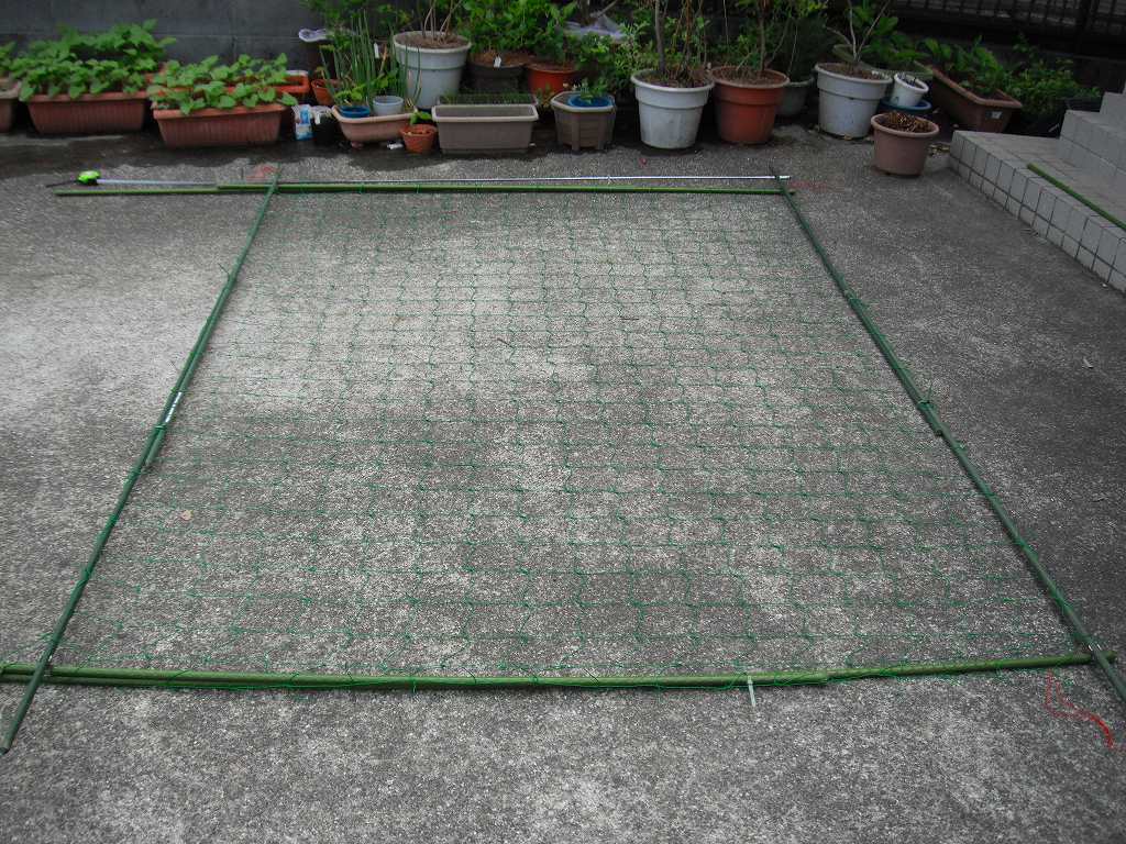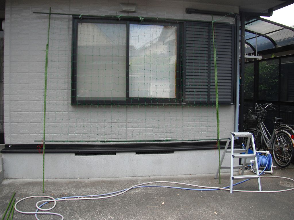 そして本日、グリーンカーテン用のネットを設置した。