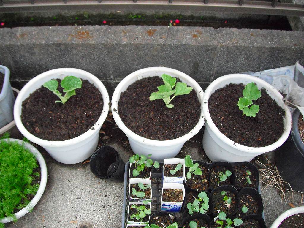 ひょうたんは、本葉が2枚から3枚出てきている。そろそろ定植の時期である。