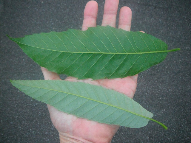 葉の裏をみると白っぽいのがアベマキで、緑色のがクヌギだそうだ。