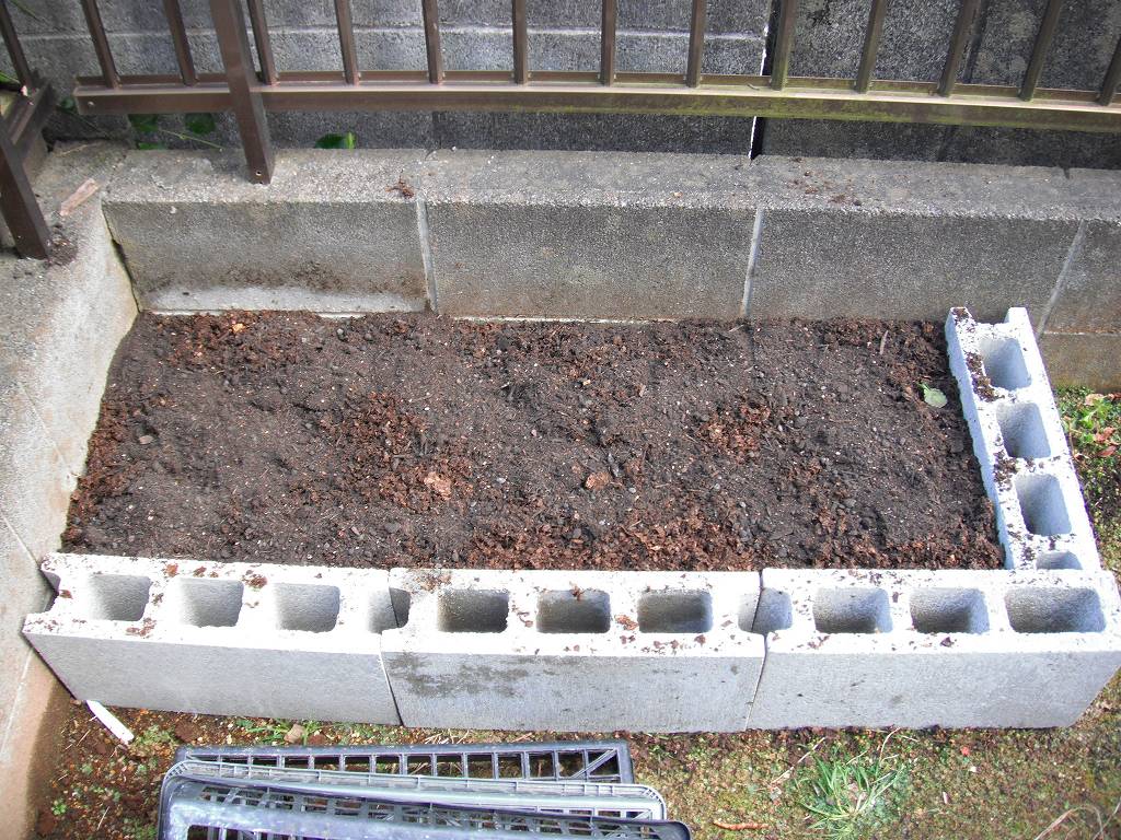 畑と言っても、ブロックで囲って土を敷いて終わりである。
