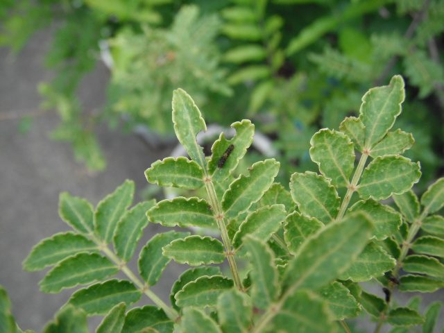 我が家にあるサンショウの木には、ナミアゲハの幼虫がたくさんいたはずであるが、昨日確認するとほとんどがいなくなっていた。たぶん近くに巣を作っている小さなクモが食べてしまったと思う。