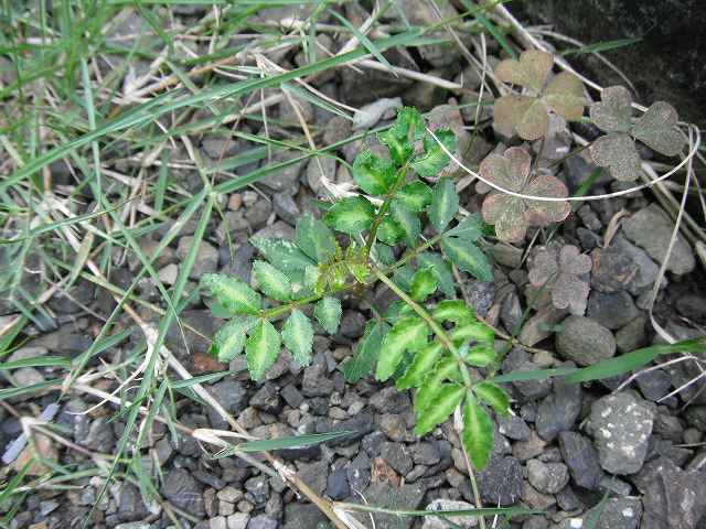 雑草に混ざってサンショウの木が家の周りの雑草を取っていると、そこに5cmほどに成長したサンショウがあるではないか。