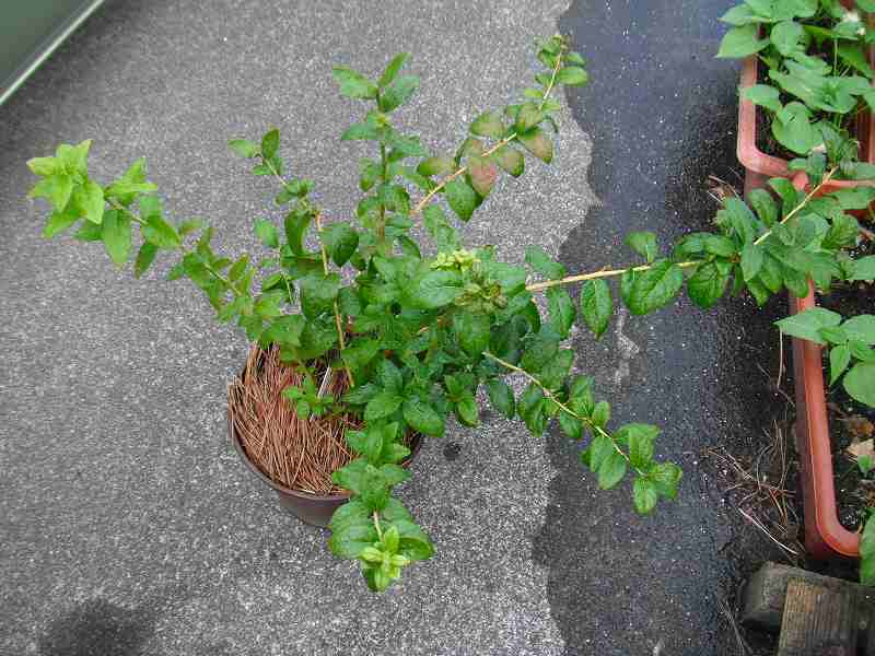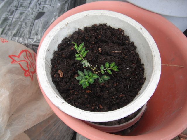 昨年緑枝挿しした1本がようやく根付いて、冬の期間を経て今春に芽がでて挿し木の成功したのであった。