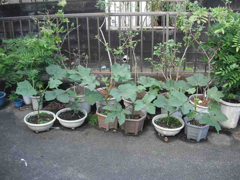 オクラの種は、順調に発芽するのであるが、ちょっと大きくなると、葉を何らかの虫に食べられてしまうため、茎だけの状態になってしまう。