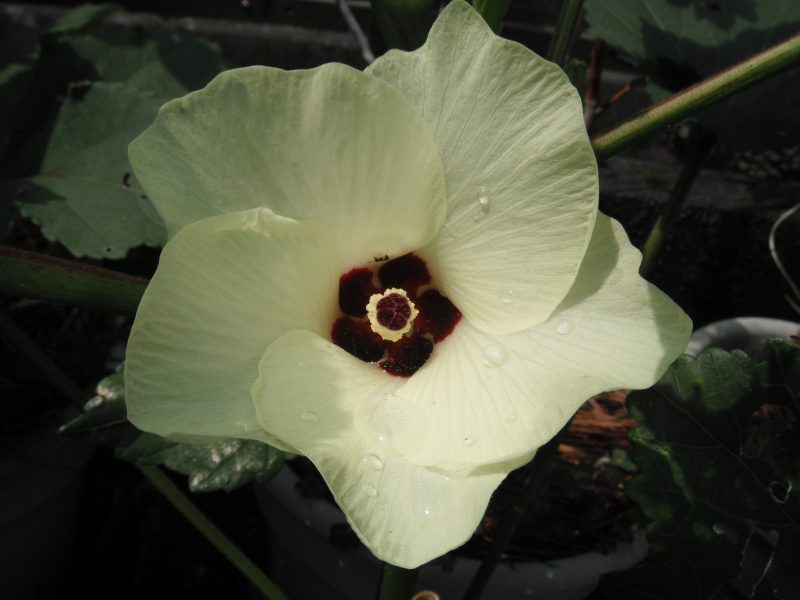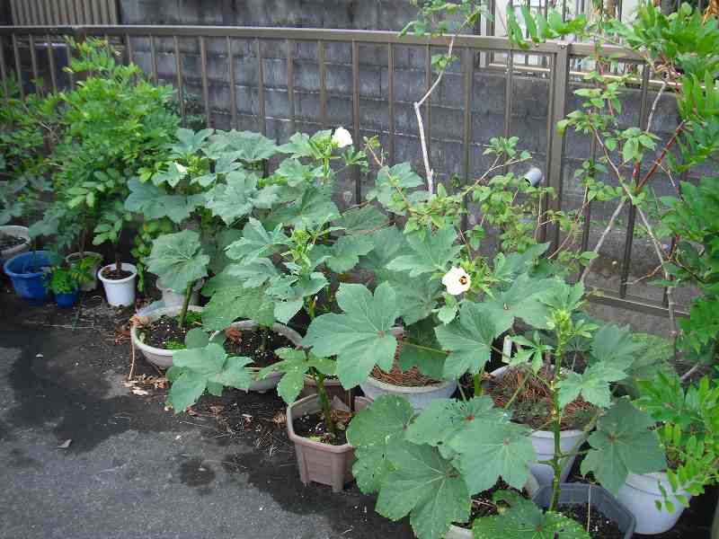 オクラの花我家ではプランターで夏野菜を栽培している。