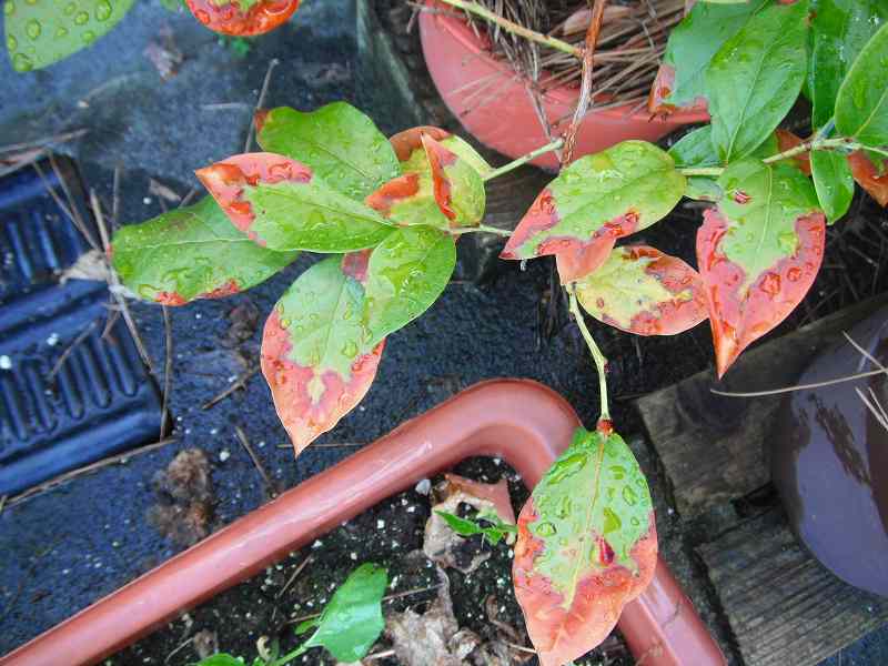 そろそろ紅葉しだしたブルーベリーの品種でてきた。