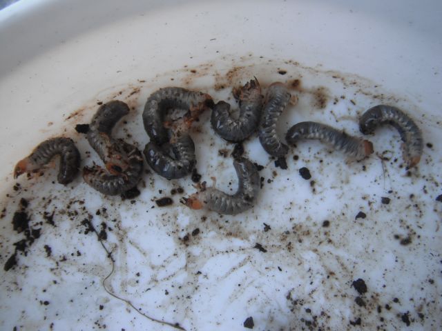 鉢にはコガネムシが入らないようにマルチ材で保護しているのであるが、それでも被害は毎年ある。