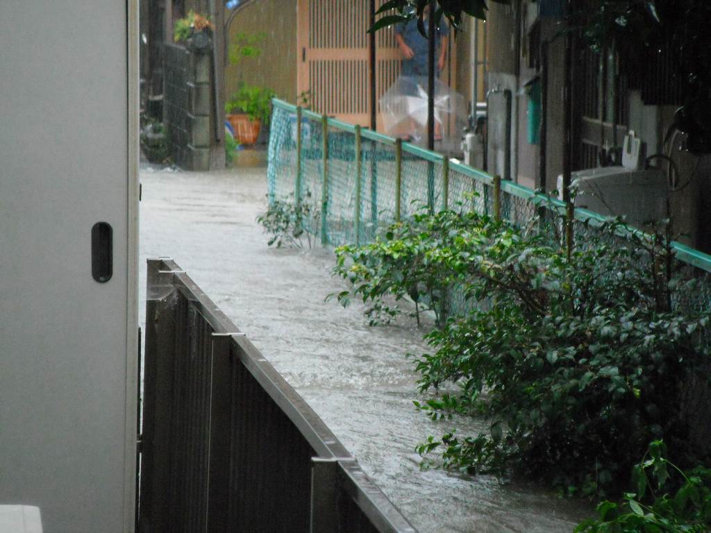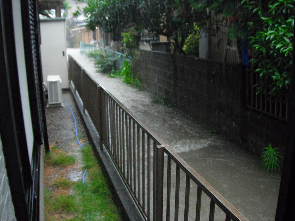 自宅の横には水路がある。雨が降ると近所の雨は皆この水路に集まり、自宅の横を流れていく。