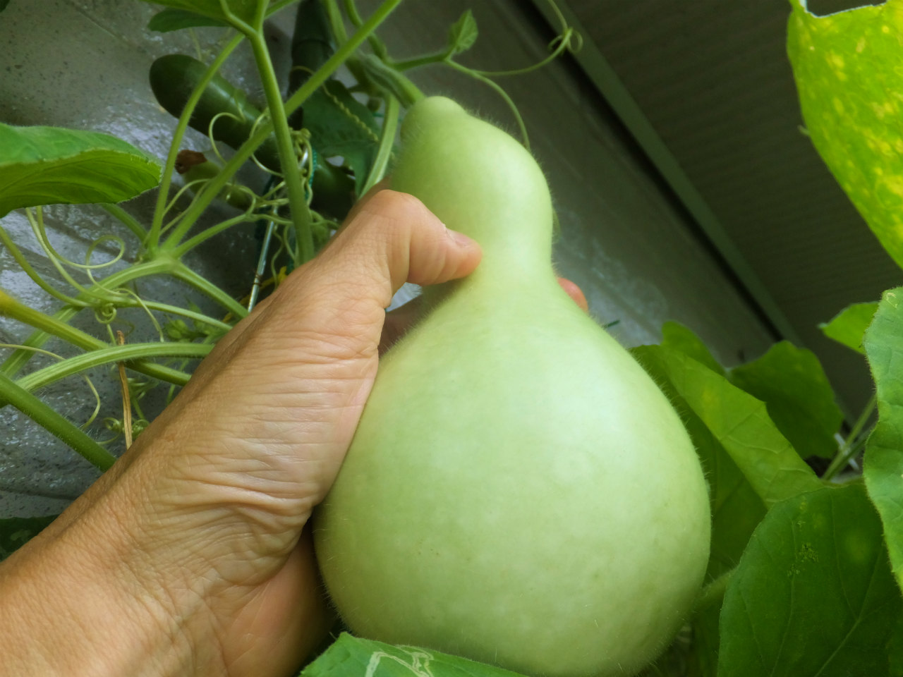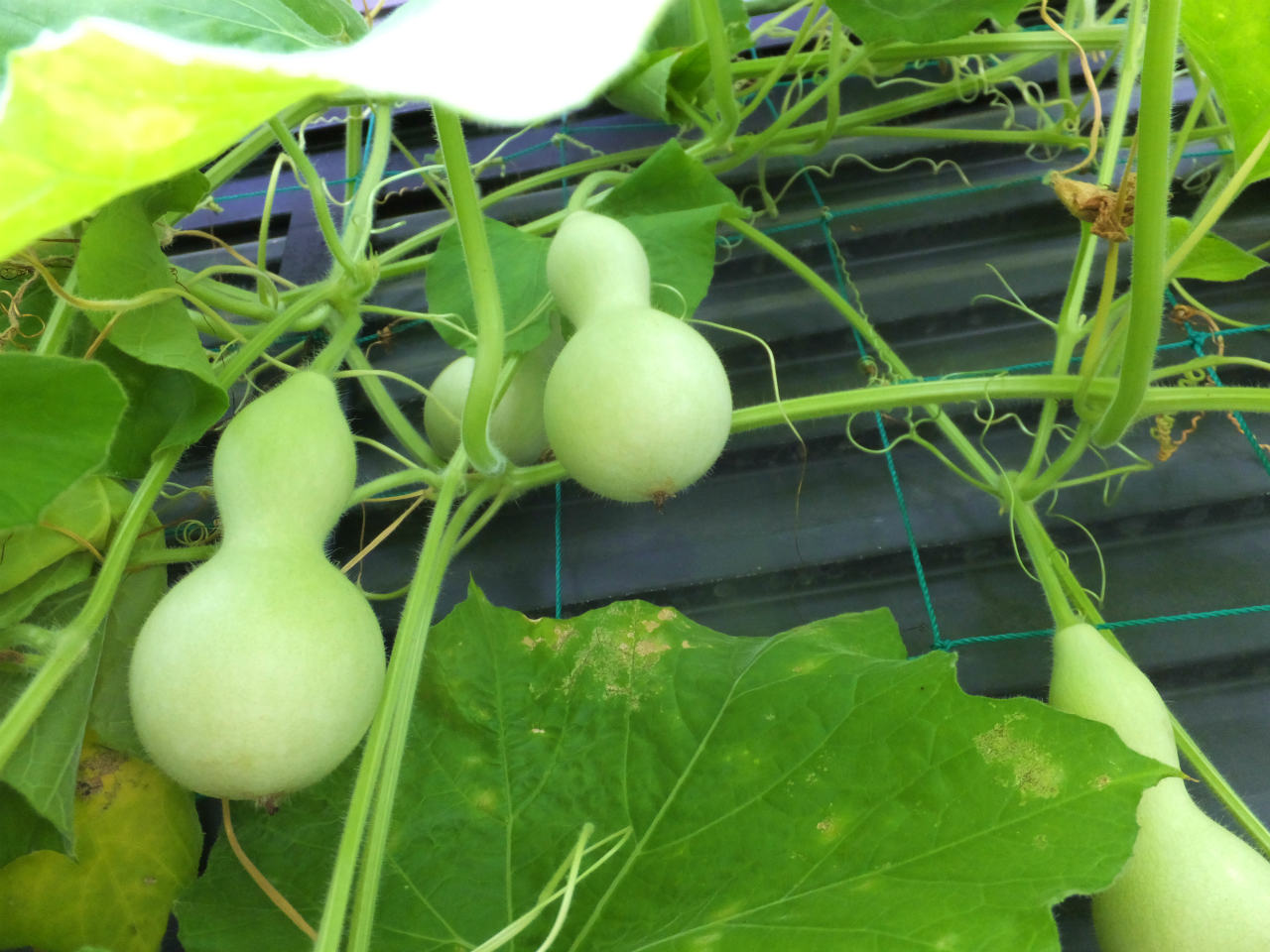 後は、ウリキンウワバの幼虫の繁殖具合を確認して、南側のヒョウタンを収穫する。