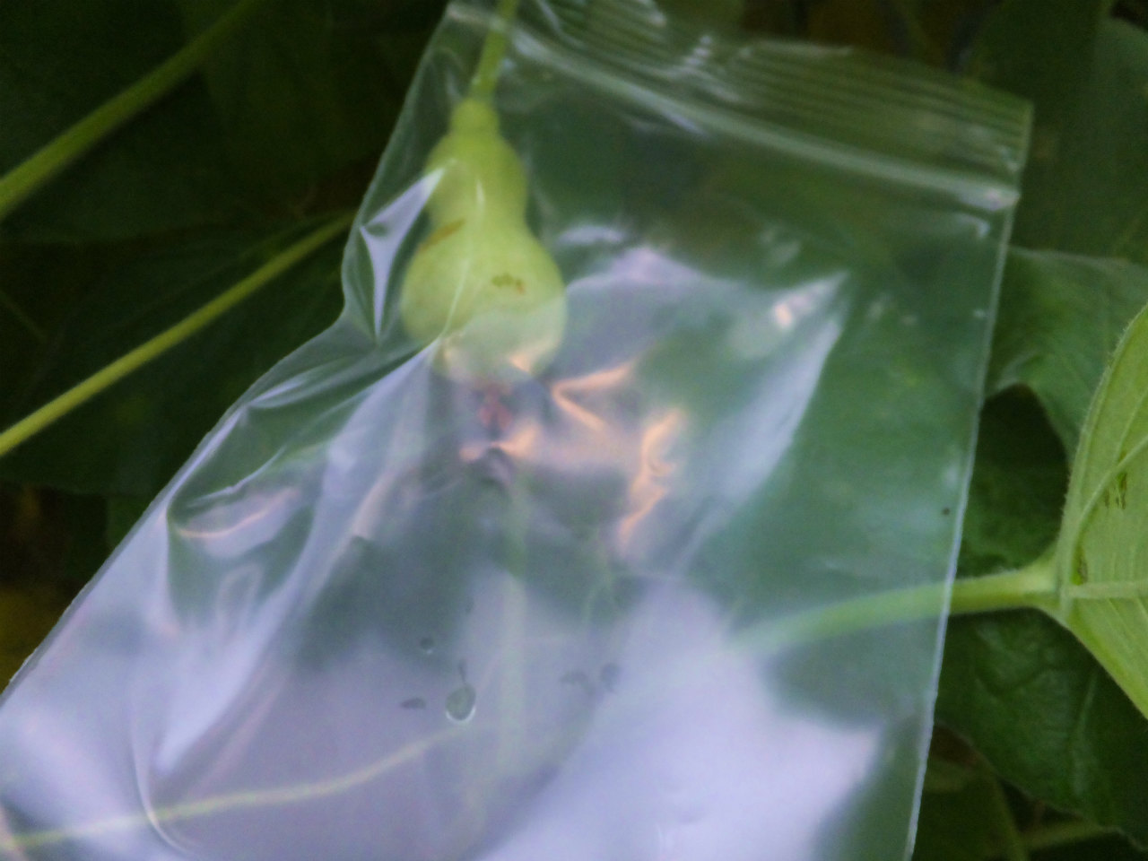 南側ヒョウタンは、雌花の咲き始めが遅かったので、8月に入っても雌花が咲くので授粉作業を行っている。