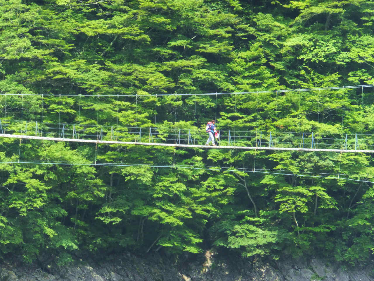 写真には撮っていないが、吊り橋の下は、干上がったダムの底が見えている。