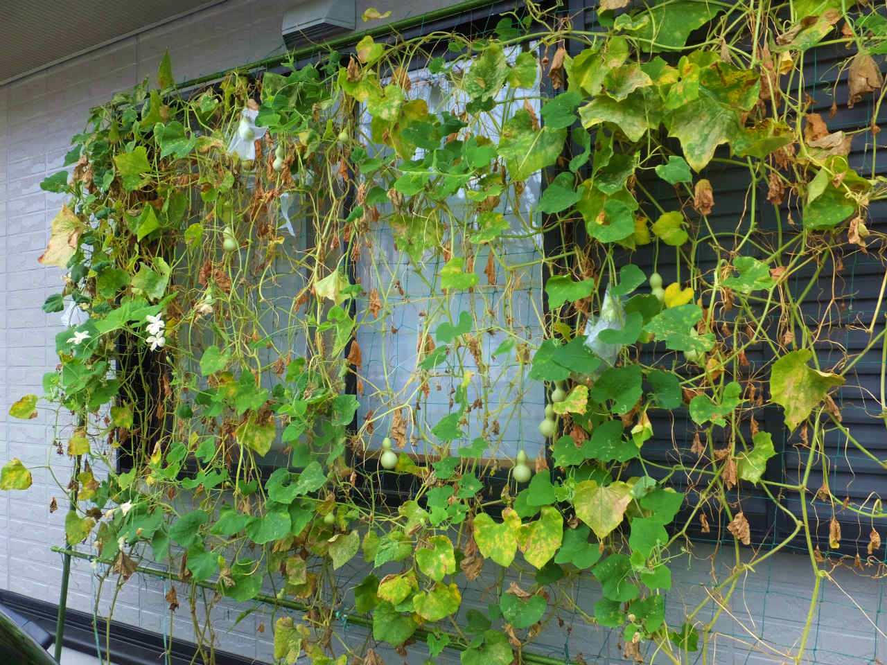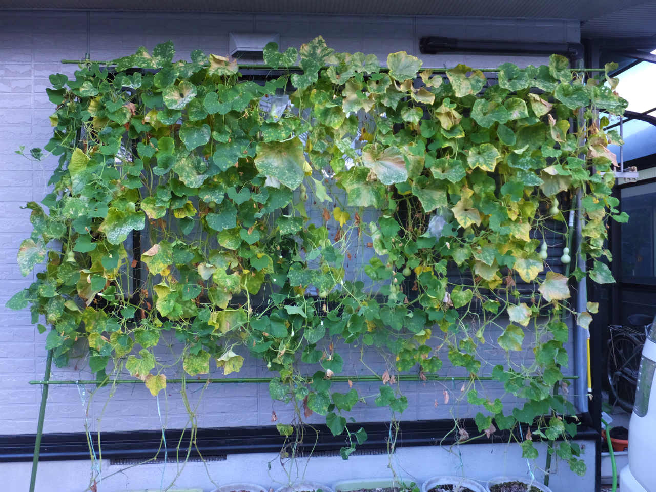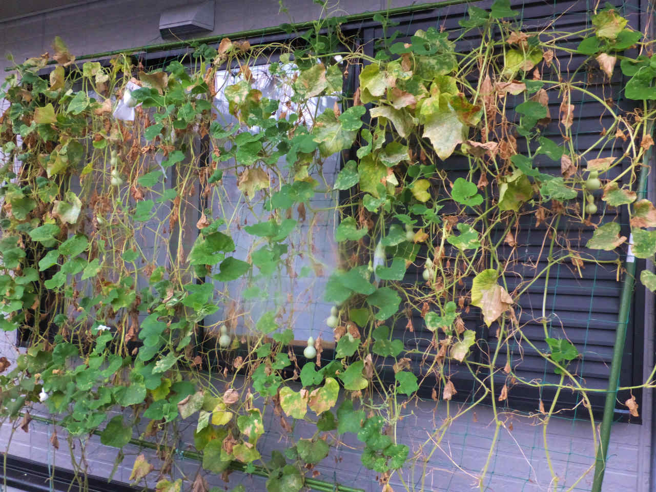 西側ヒョウタン栽培終了2017/08/20西側のヒョウタンはグリーンカーテンの枠割は全くはたしていない。