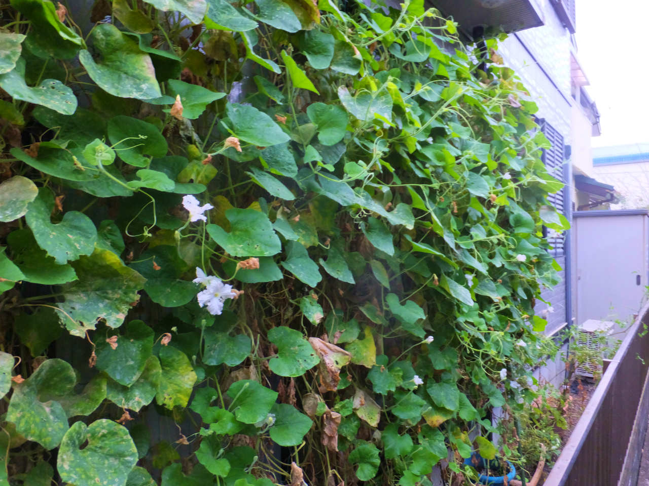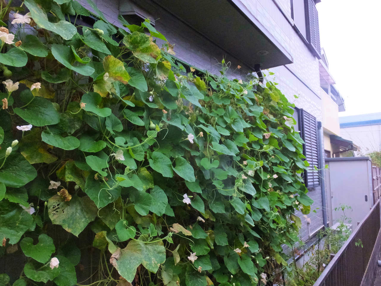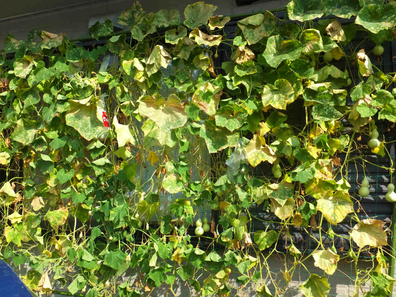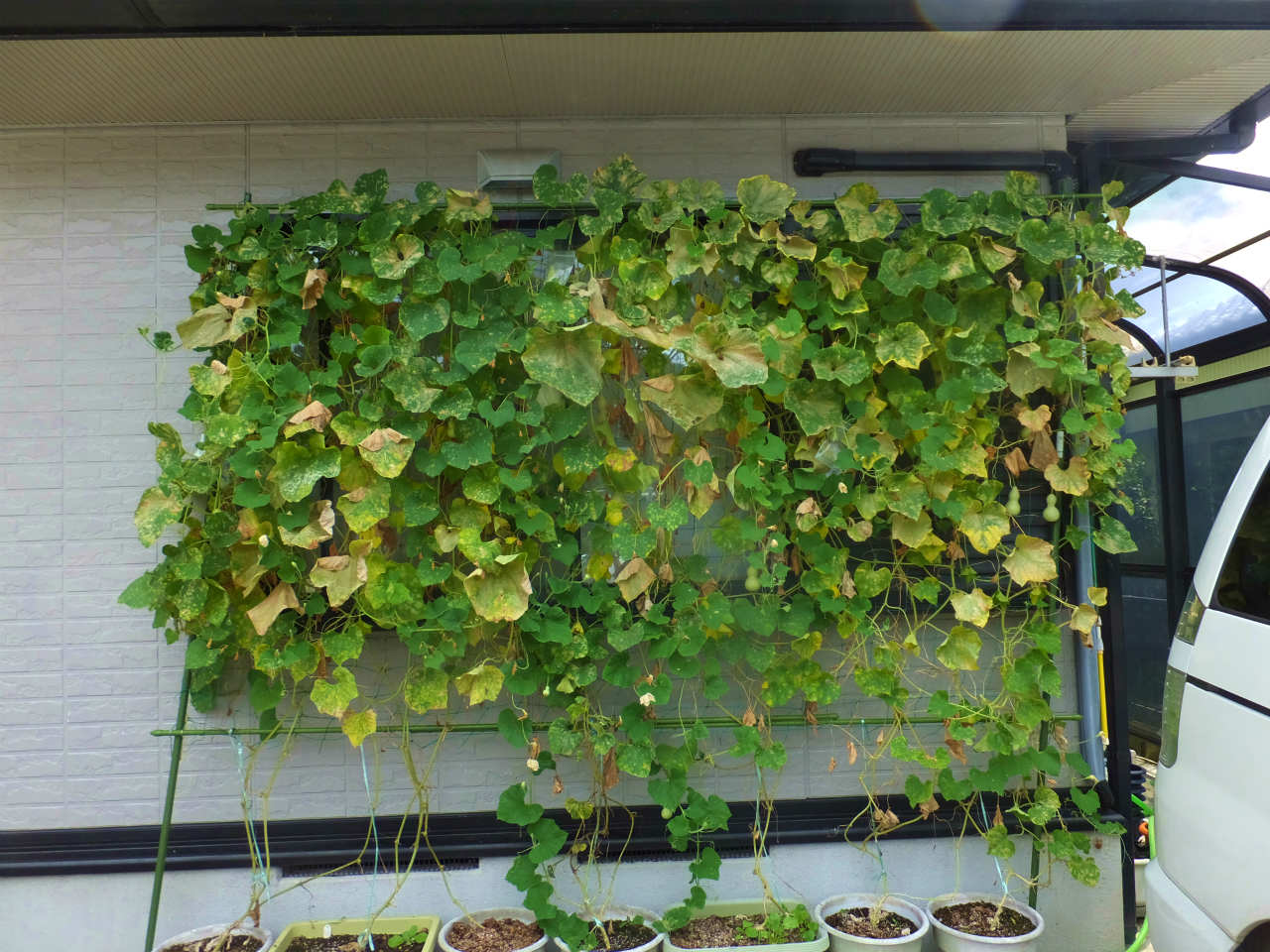 西側ヒョウタン栽培終了2017/08/20西側のヒョウタンはグリーンカーテンの枠割は全くはたしていない。