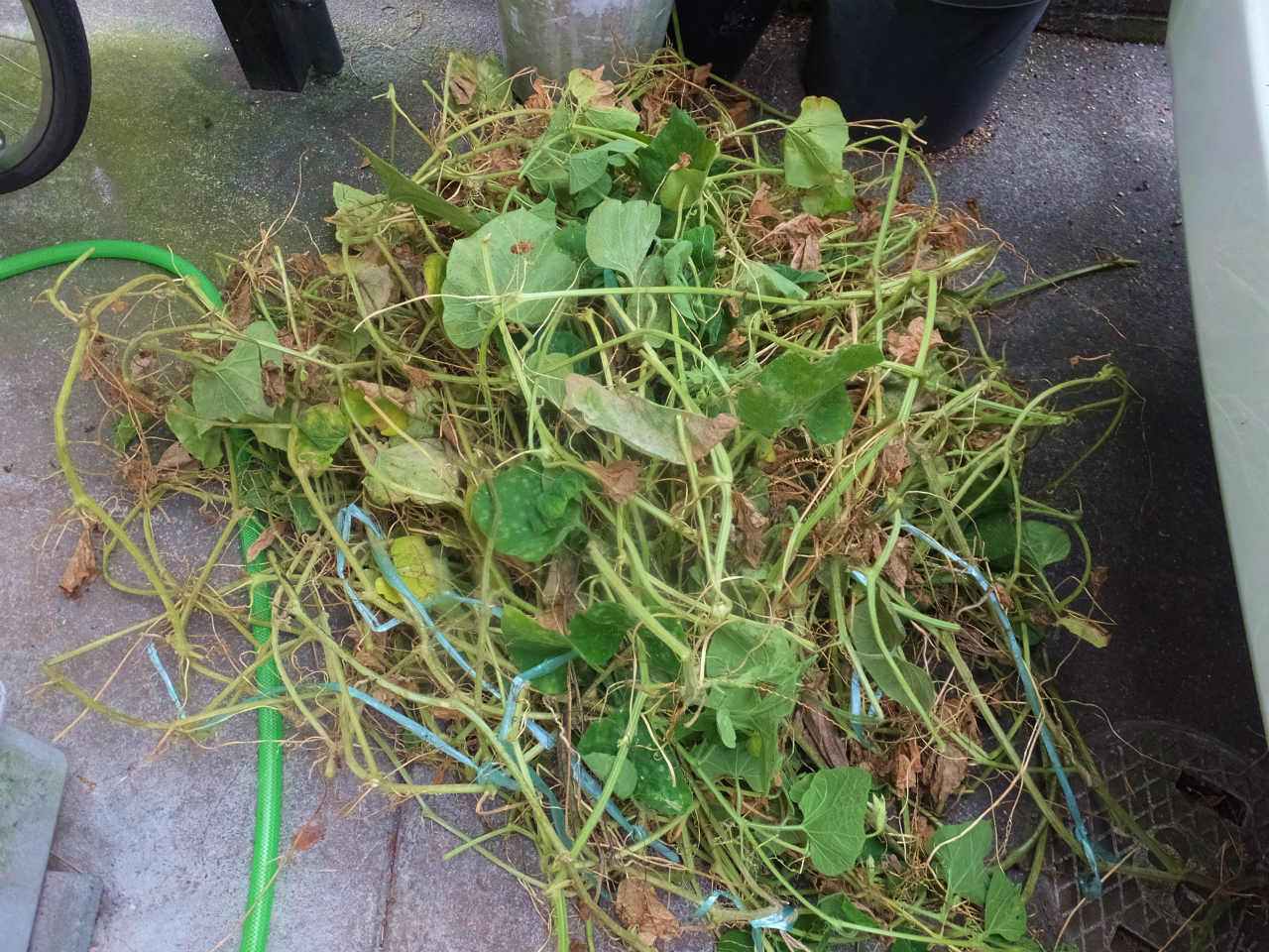 その下部から出ていた蔓はネットに絡まりながら茶色く変色して枯れてしまっている。
