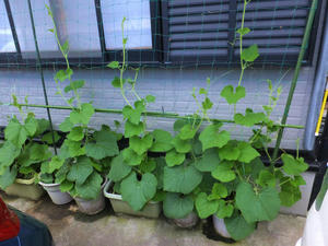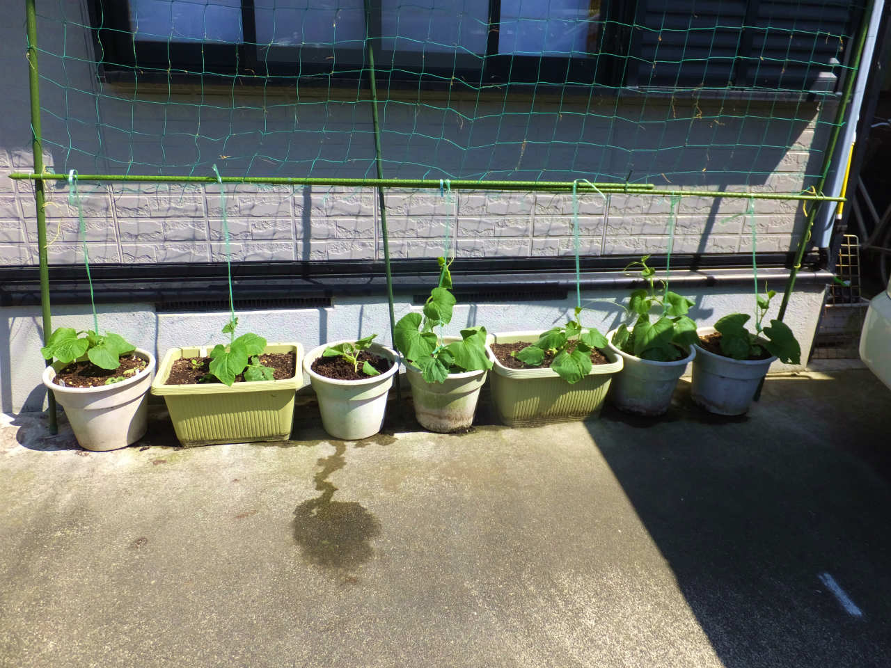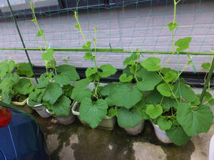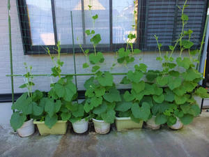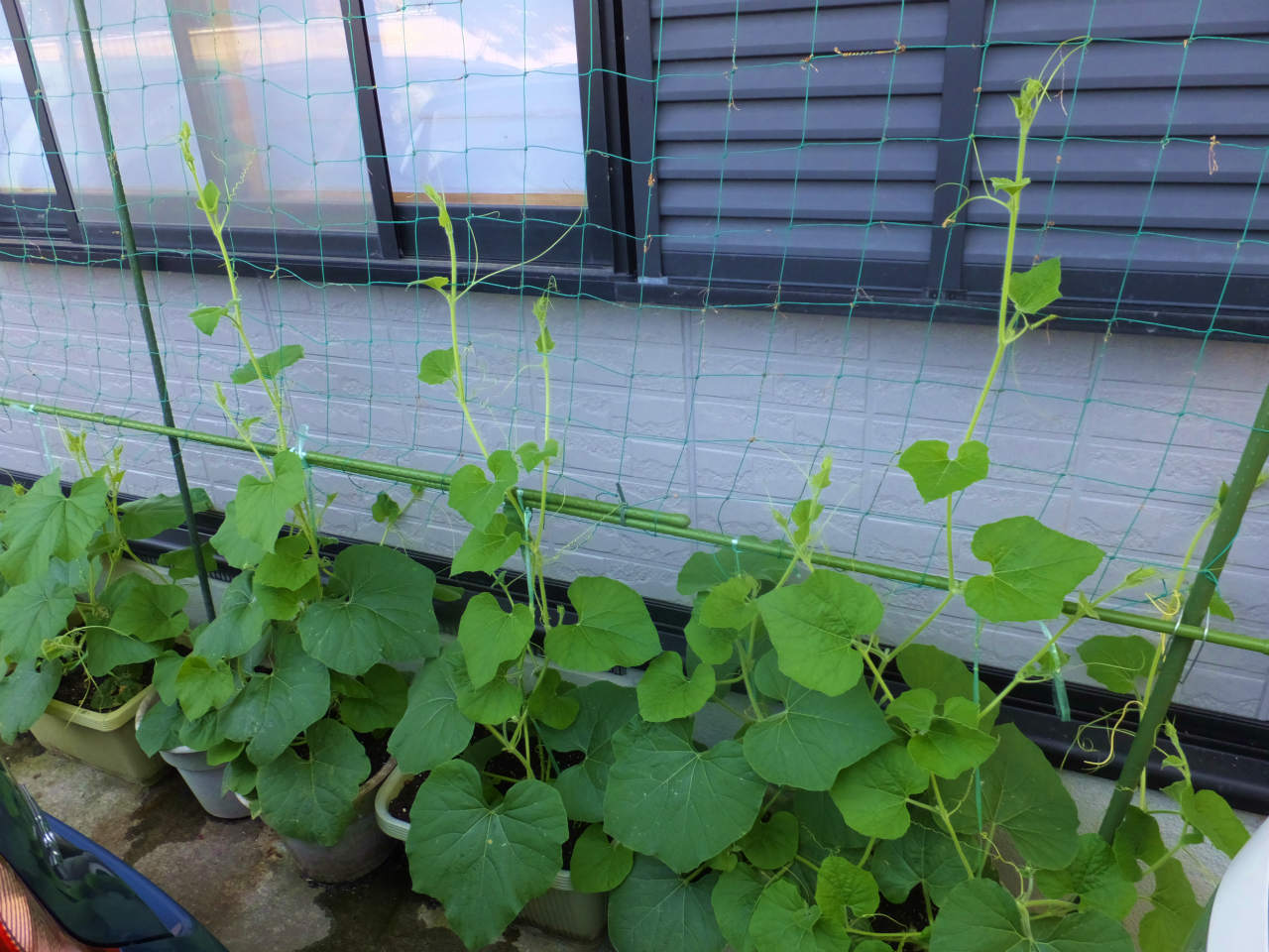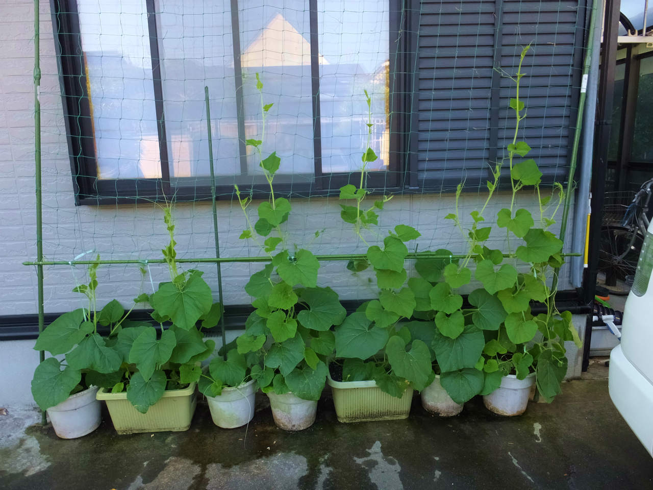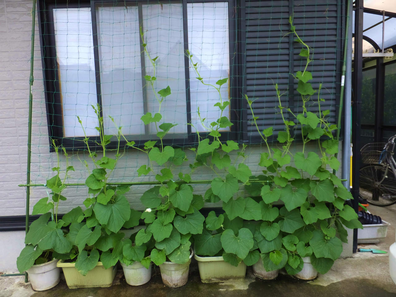 本日のヒョウタン2017/07/15西側のヒョウタン群には、2本の大ヒョウタンの鉢がある。