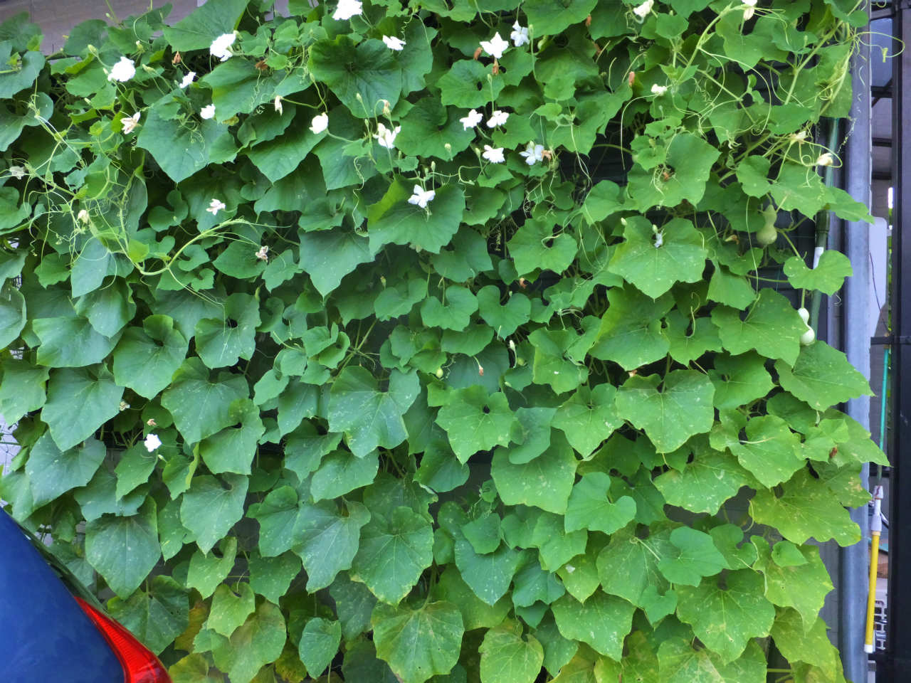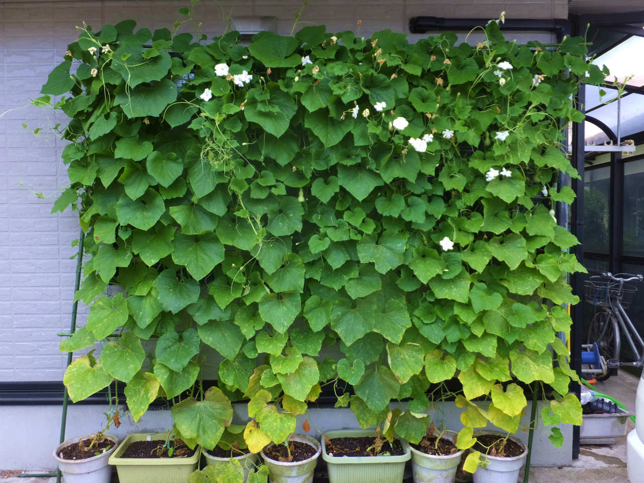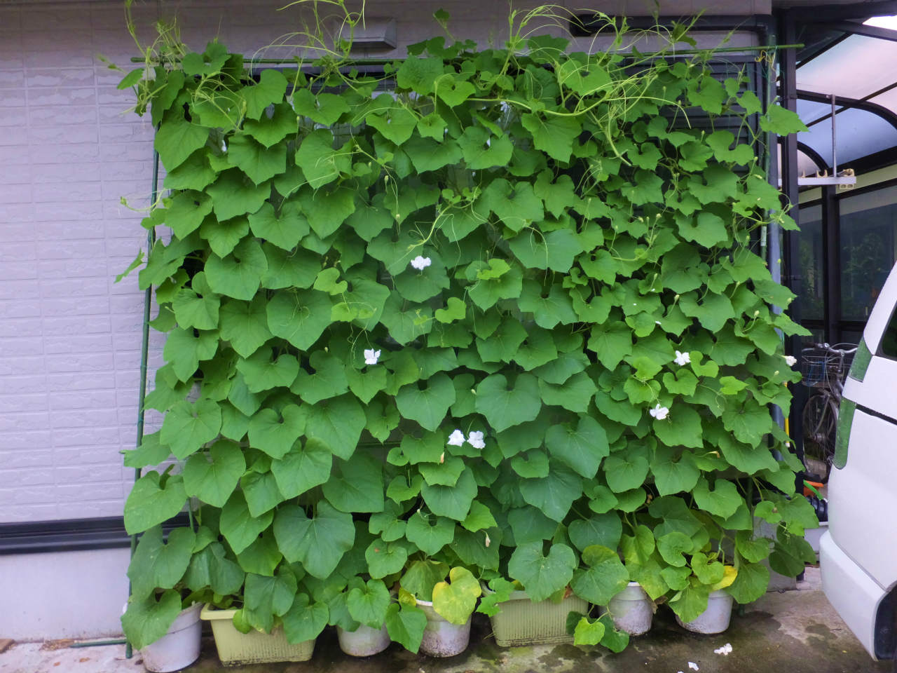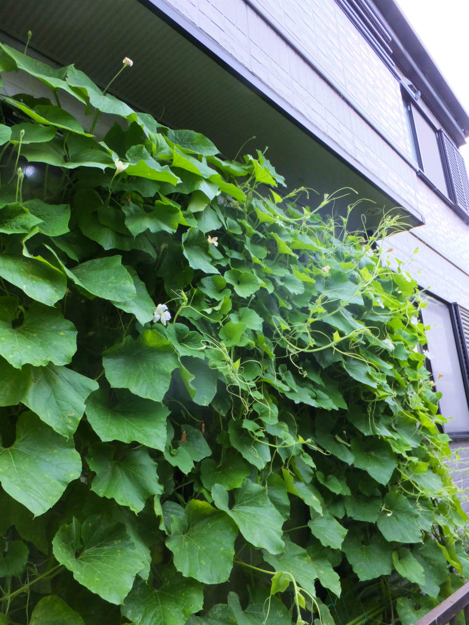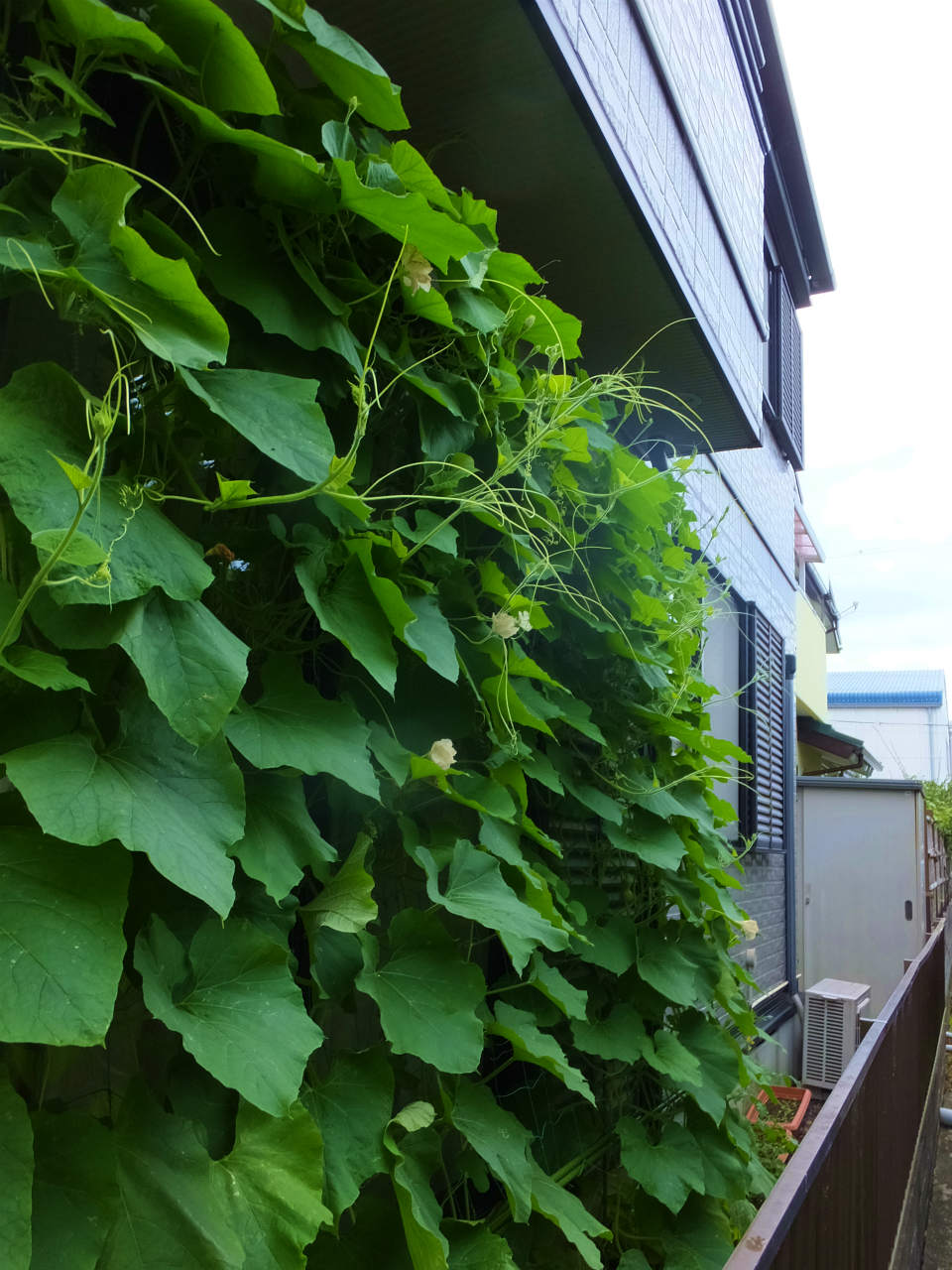 南側のヒョウタンは、やっと雌花がたくさん咲くようになった。