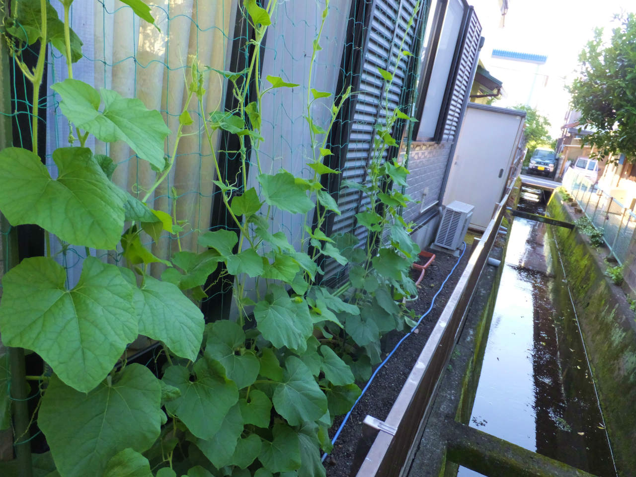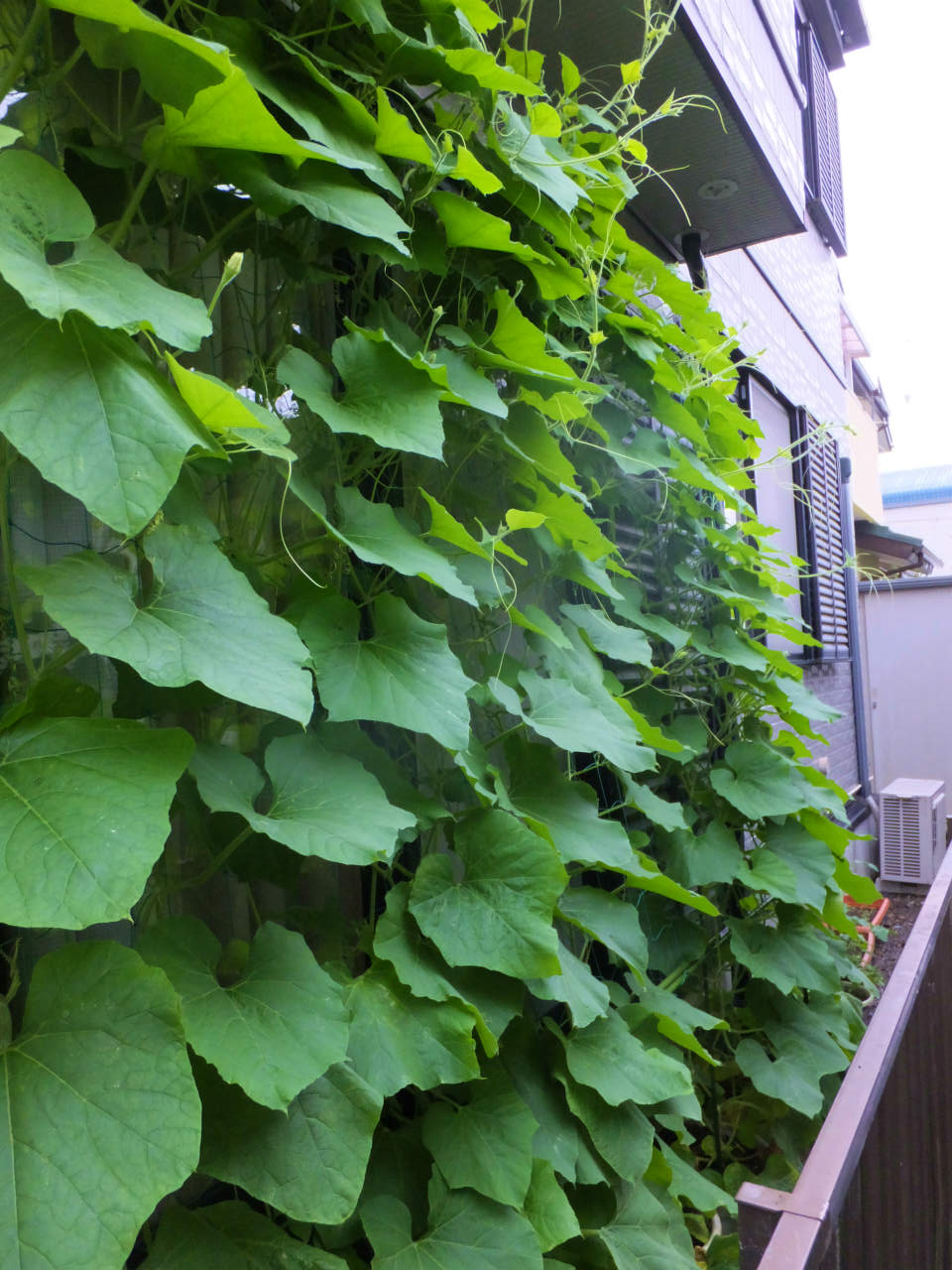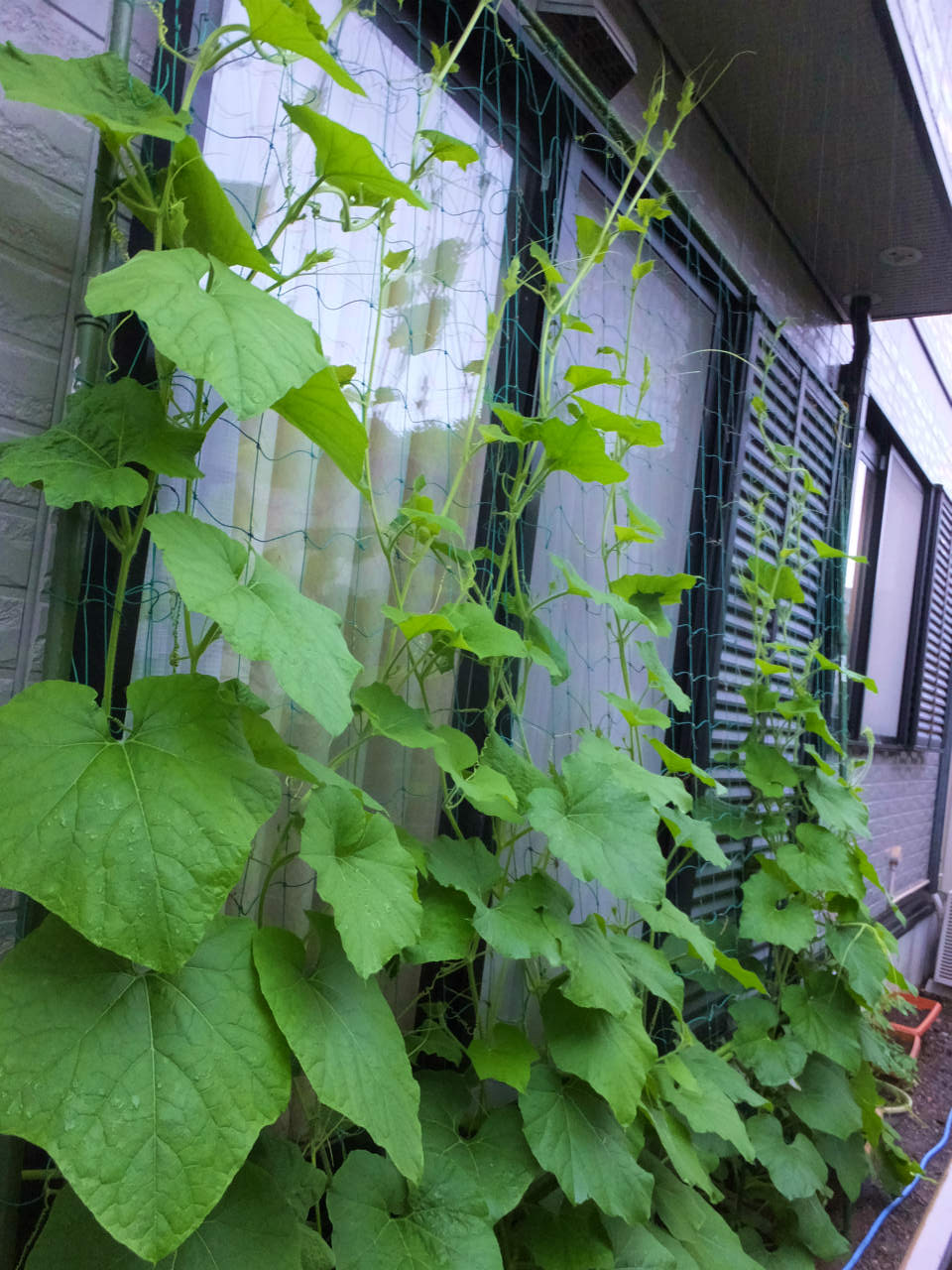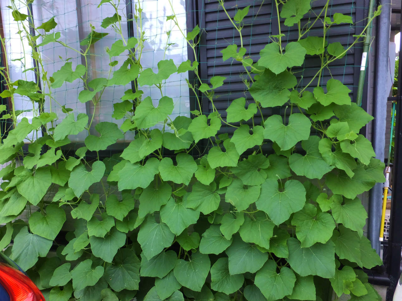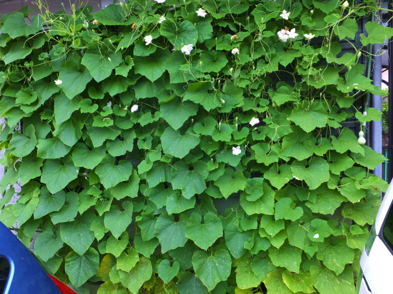 南側のヒョウタンは、やっと雌花がたくさん咲くようになった。
