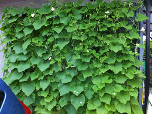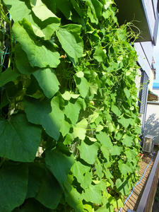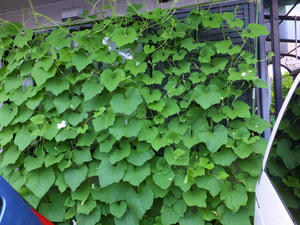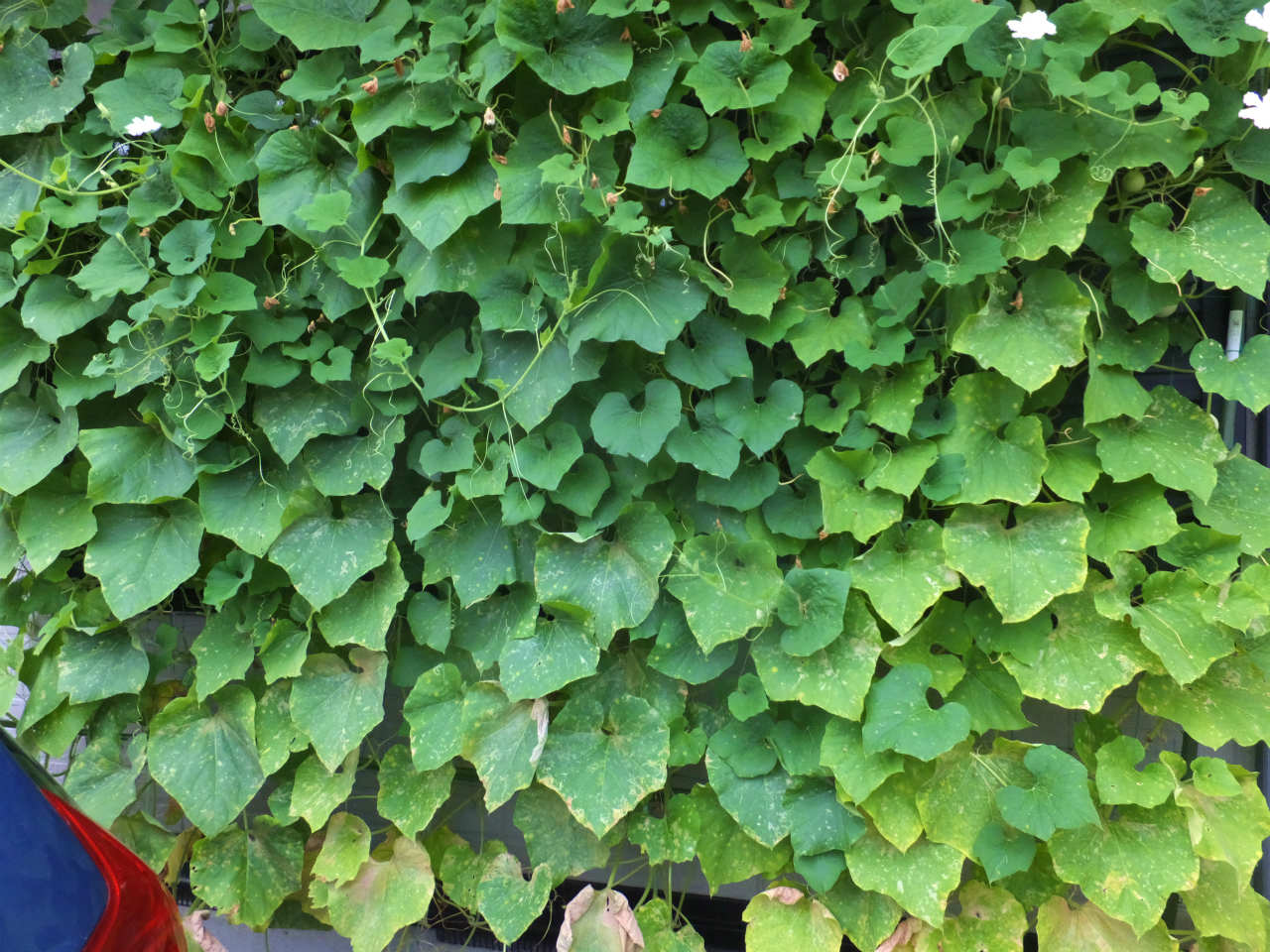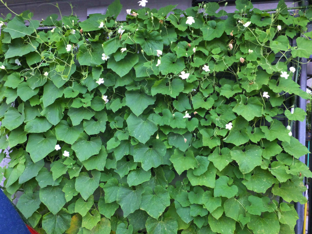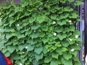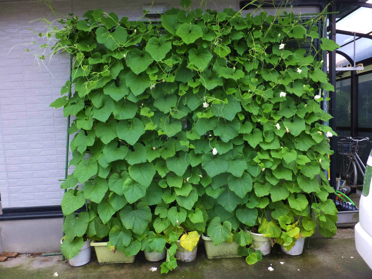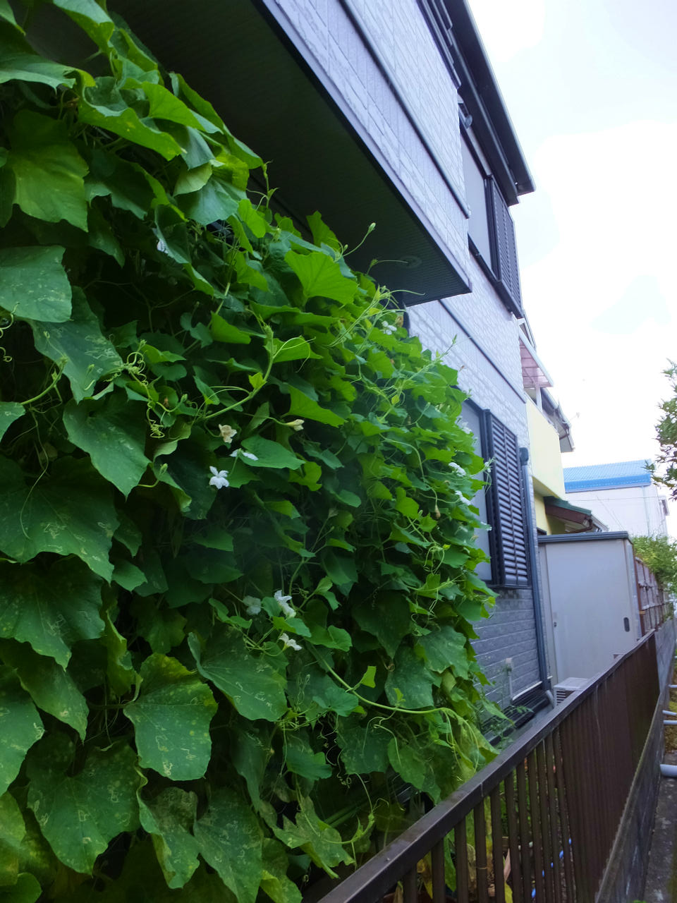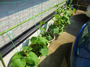 南側のヒョウタンは、やっと雌花がたくさん咲くようになった。