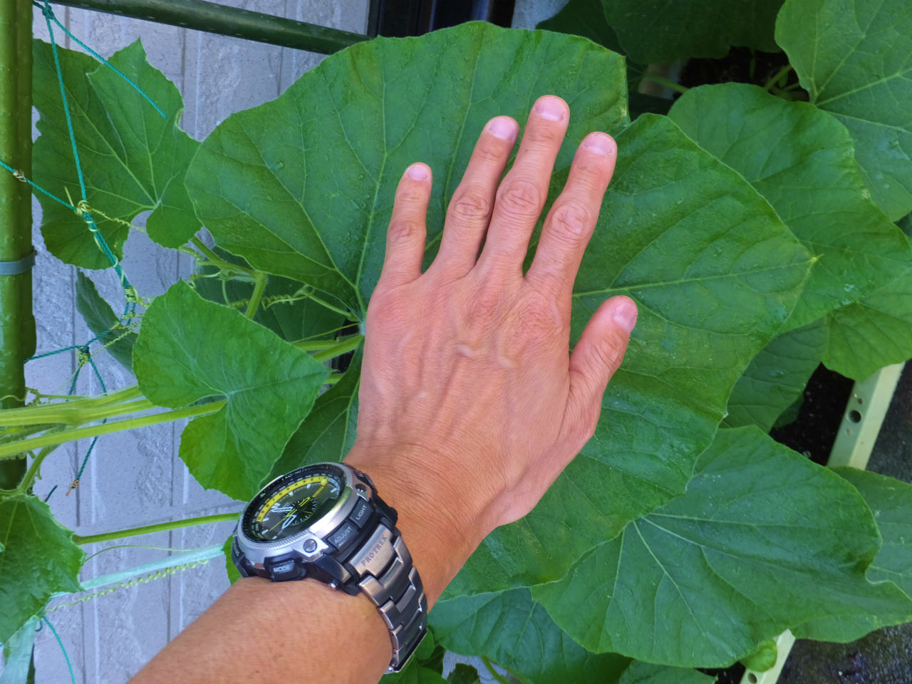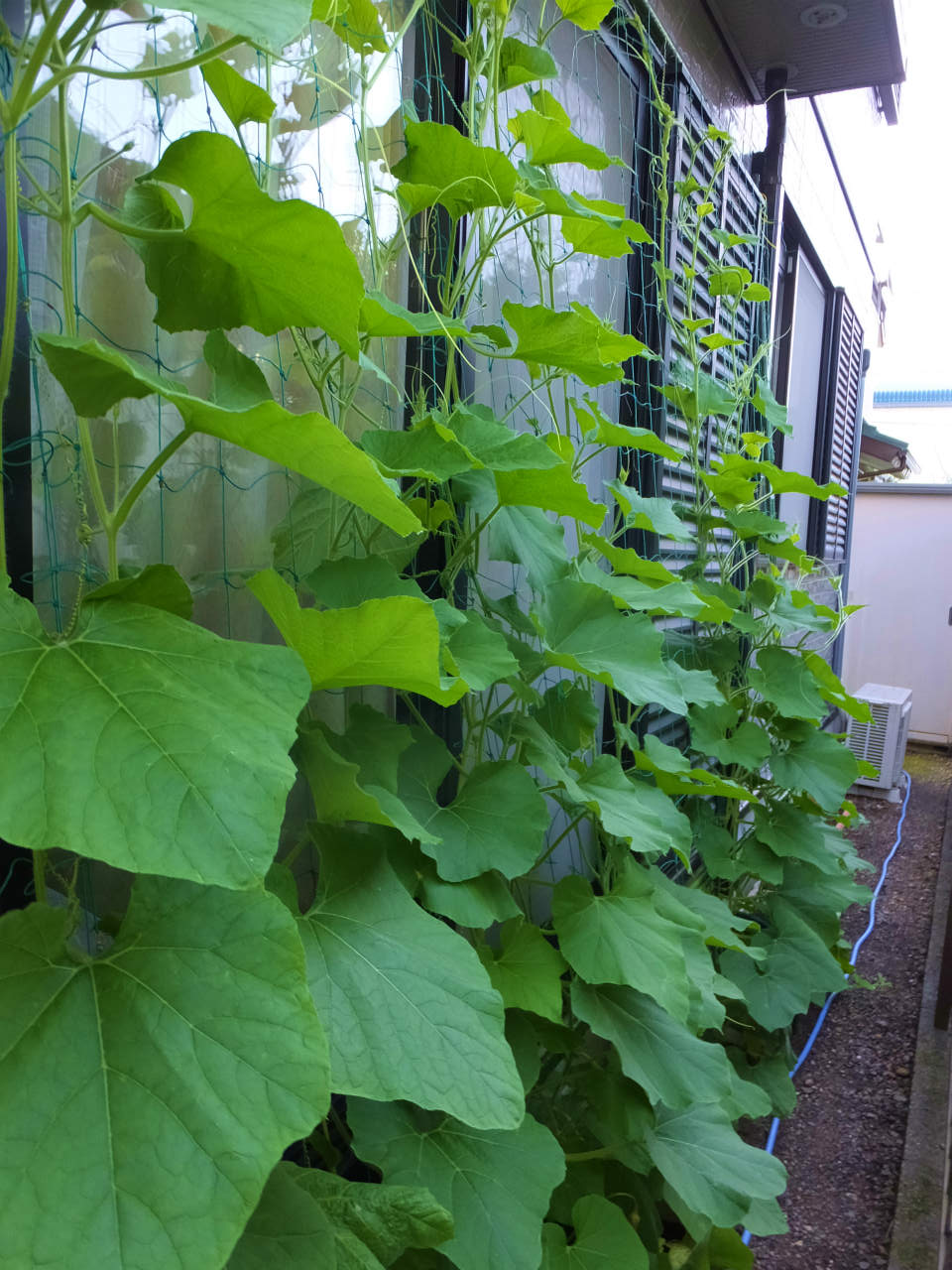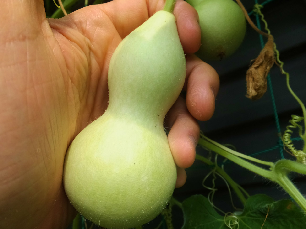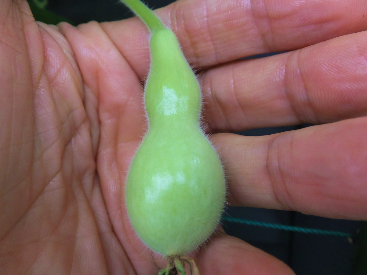 前にも書いたが、大ヒョウタンは実に養分を集中させるため、大きく成長する以外の実はしぼんで枯れてしまう。また十分実が育つまで雌花も咲かない。