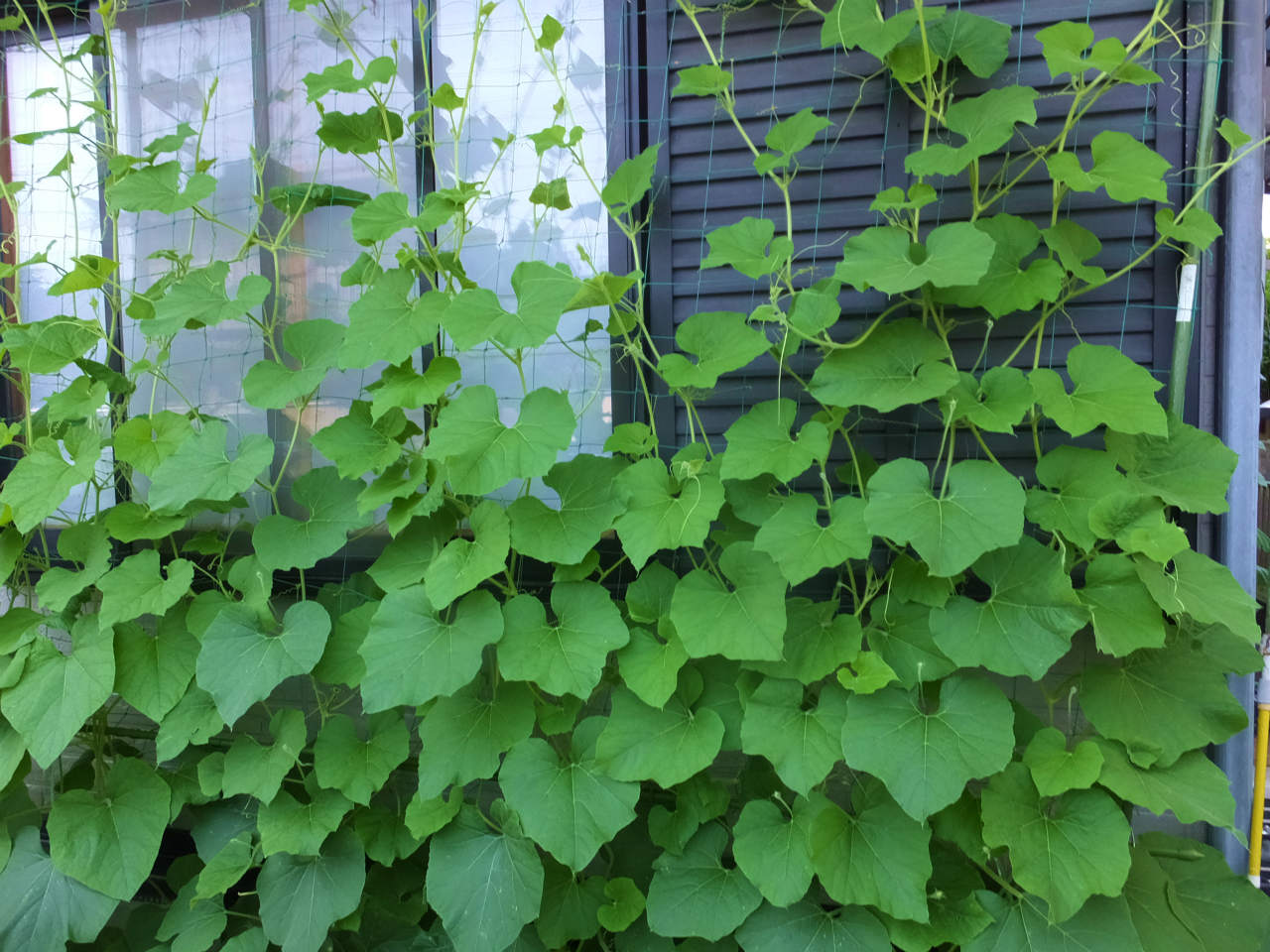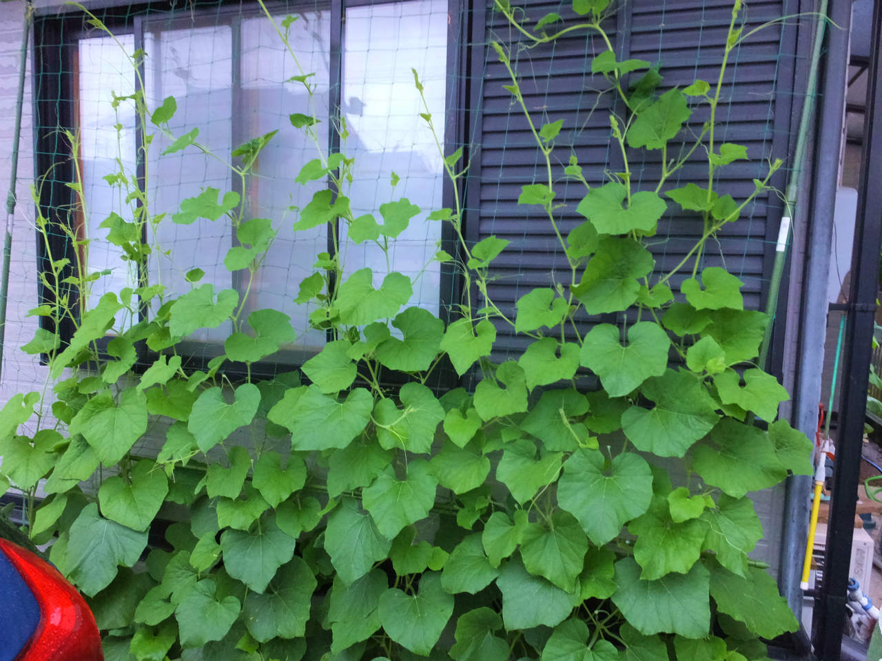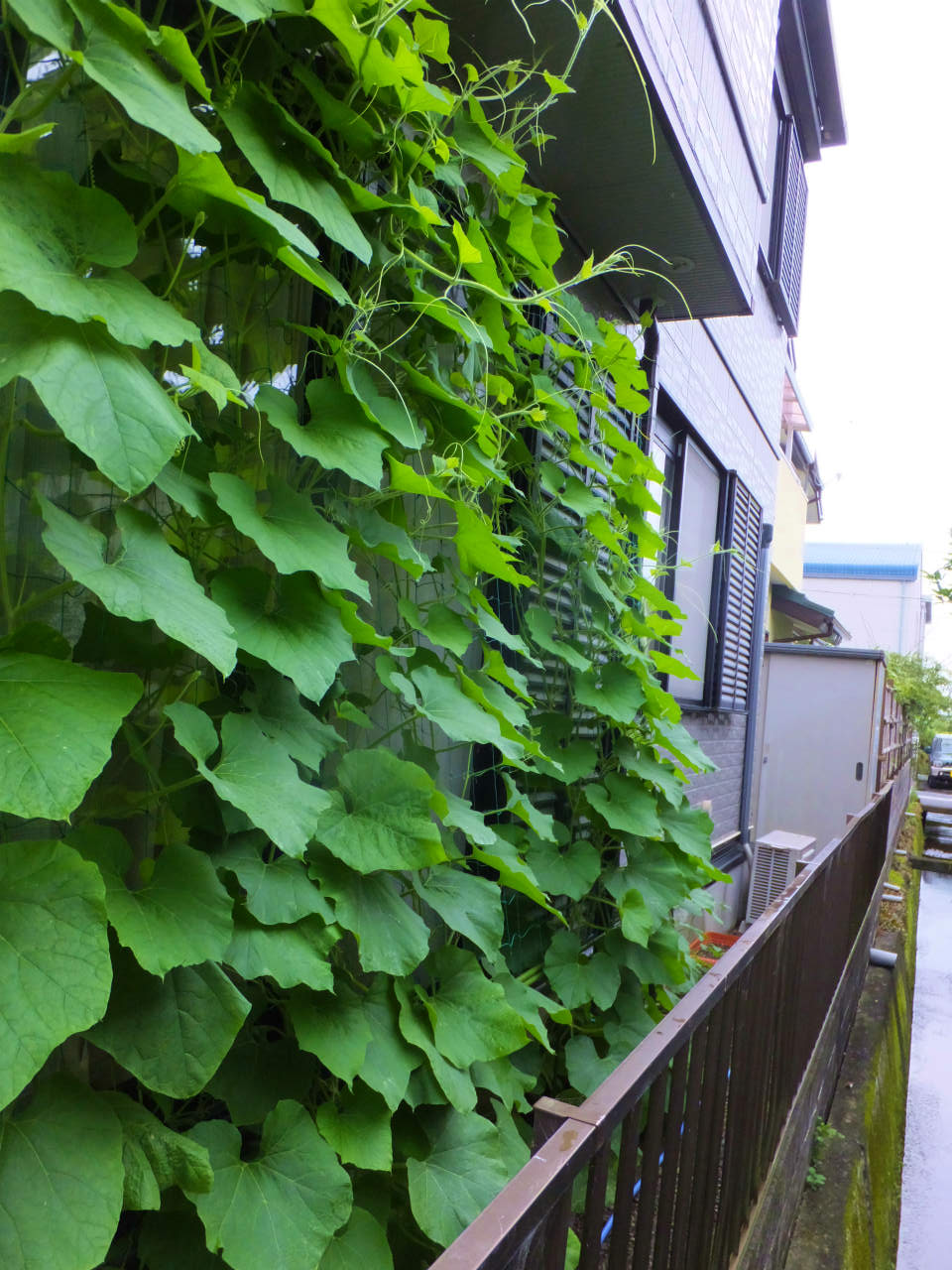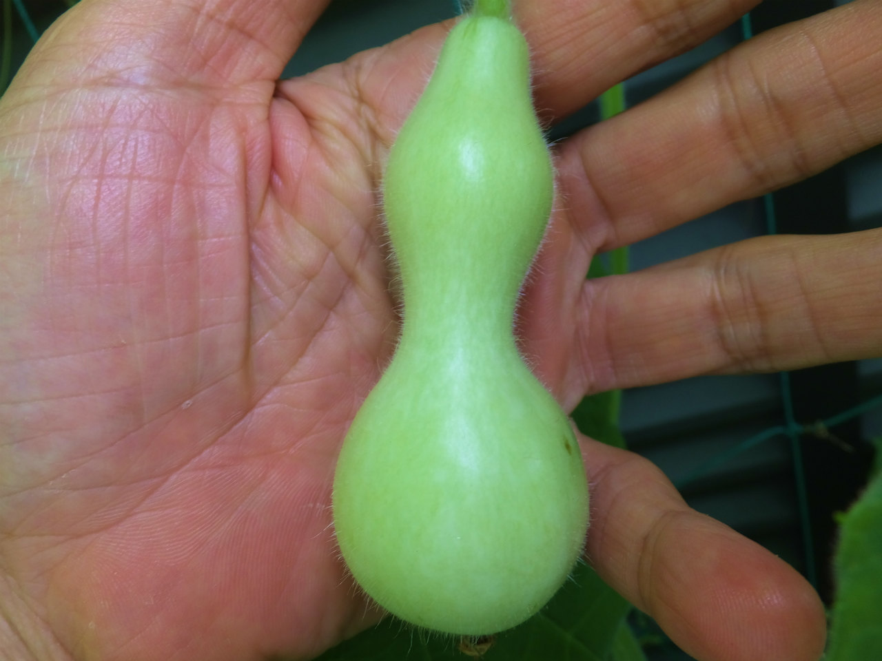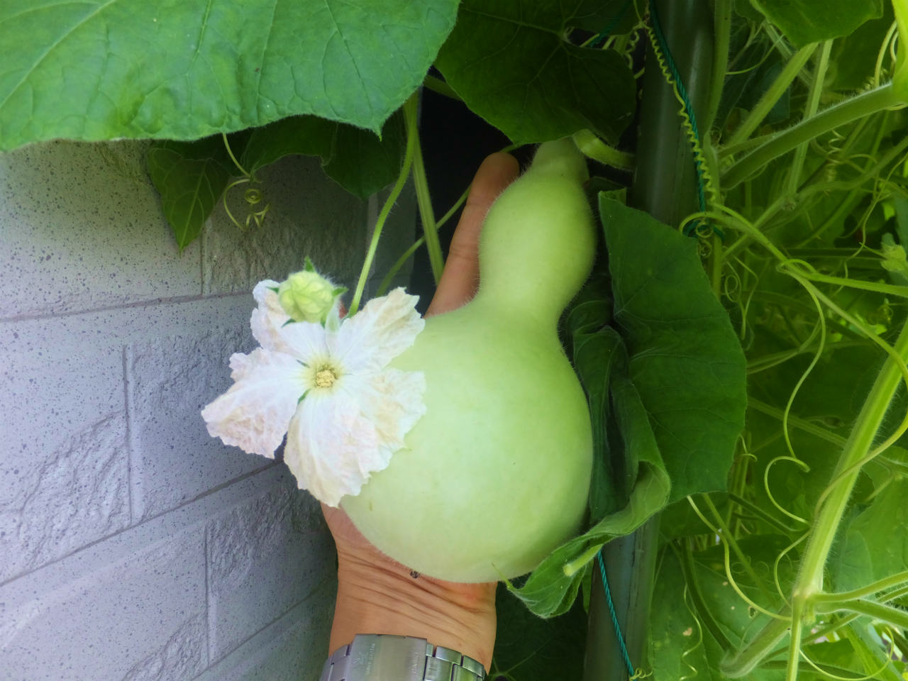 前にも書いたが、大ヒョウタンは実に養分を集中させるため、大きく成長する以外の実はしぼんで枯れてしまう。また十分実が育つまで雌花も咲かない。