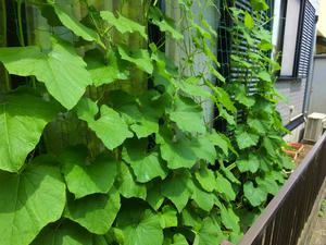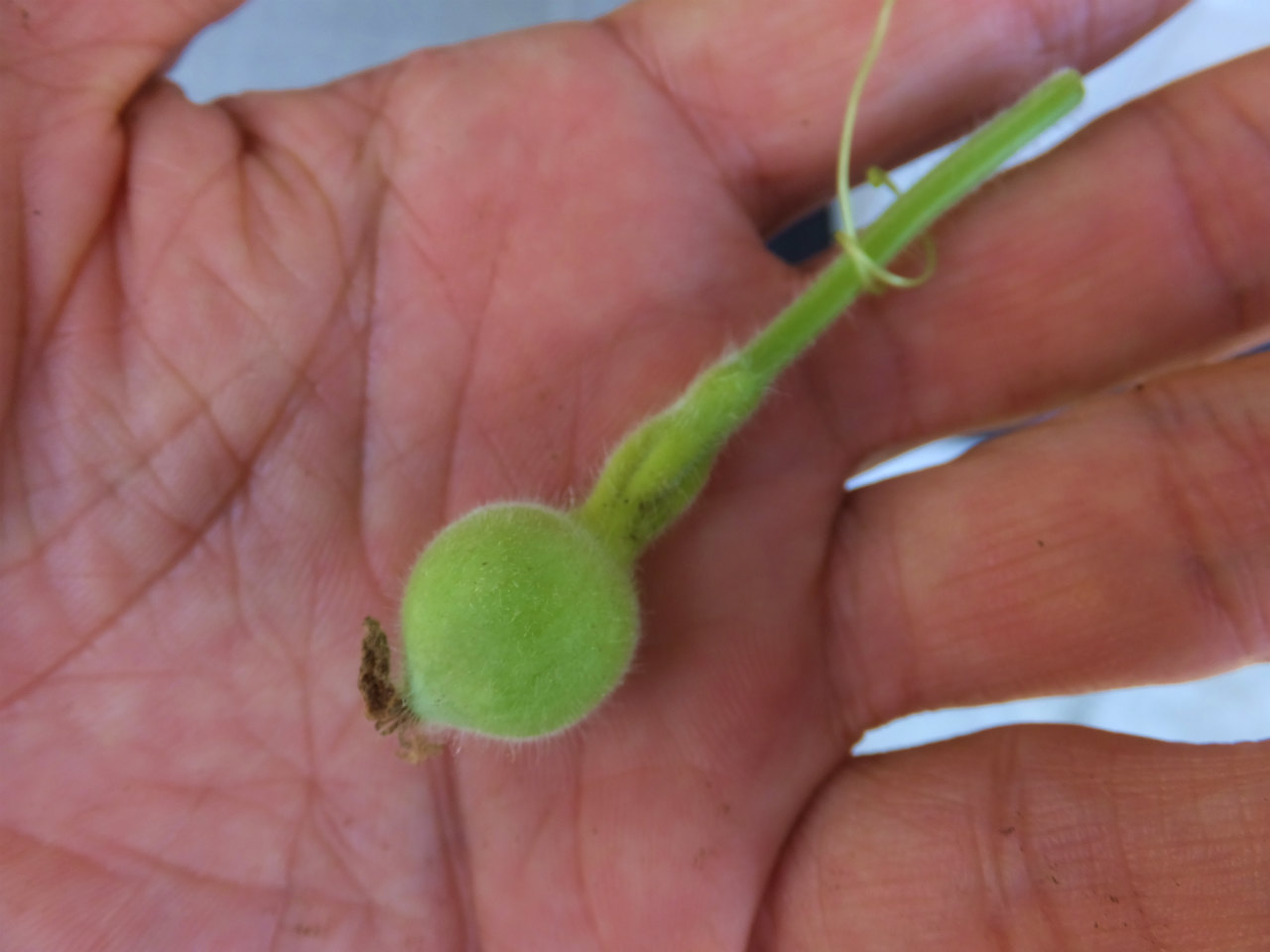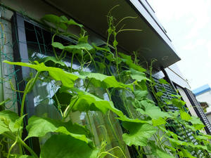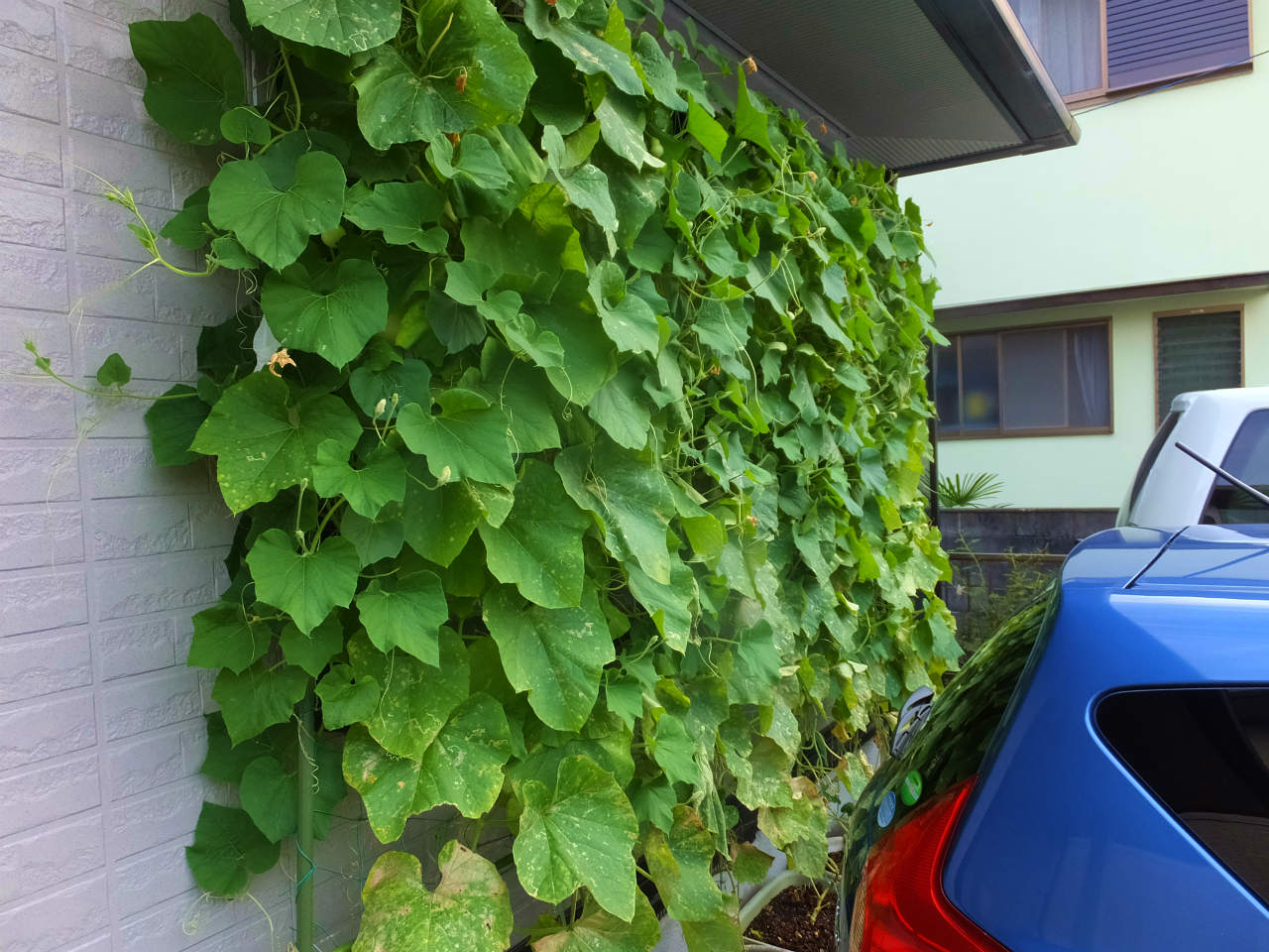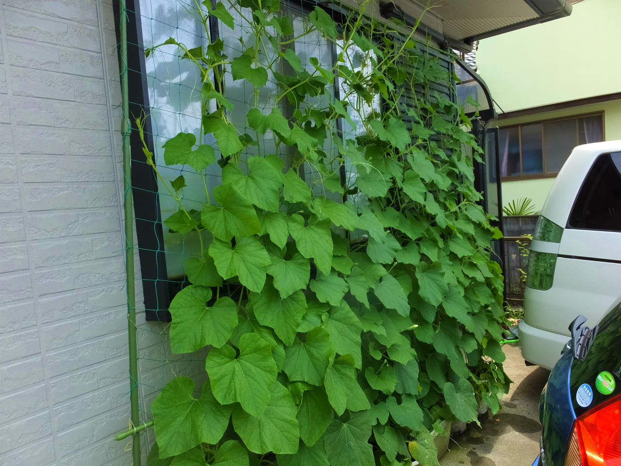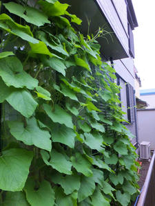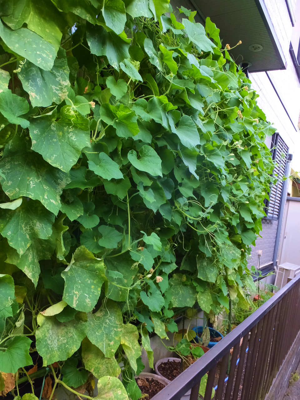 前にも書いたが、大ヒョウタンは実に養分を集中させるため、大きく成長する以外の実はしぼんで枯れてしまう。また十分実が育つまで雌花も咲かない。