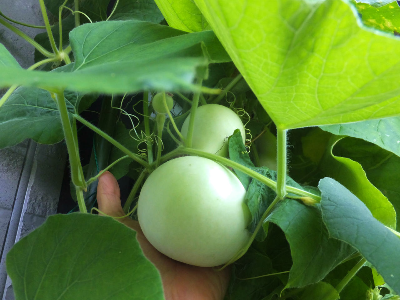 葉の裏側を確認すると3つの大ヒョウタンの実がなっていた。