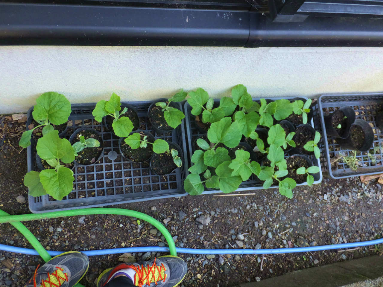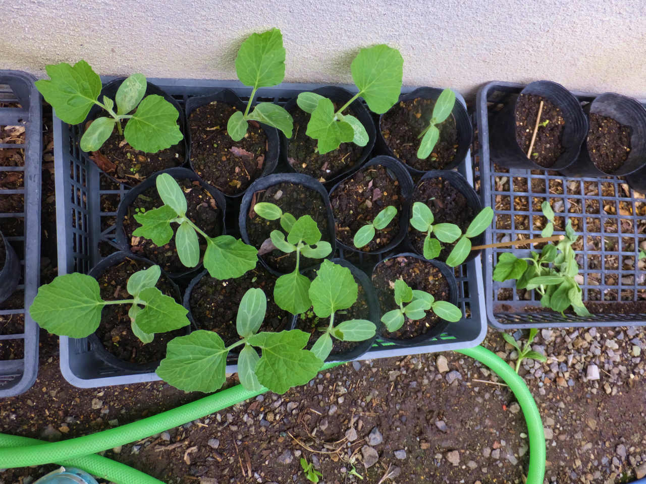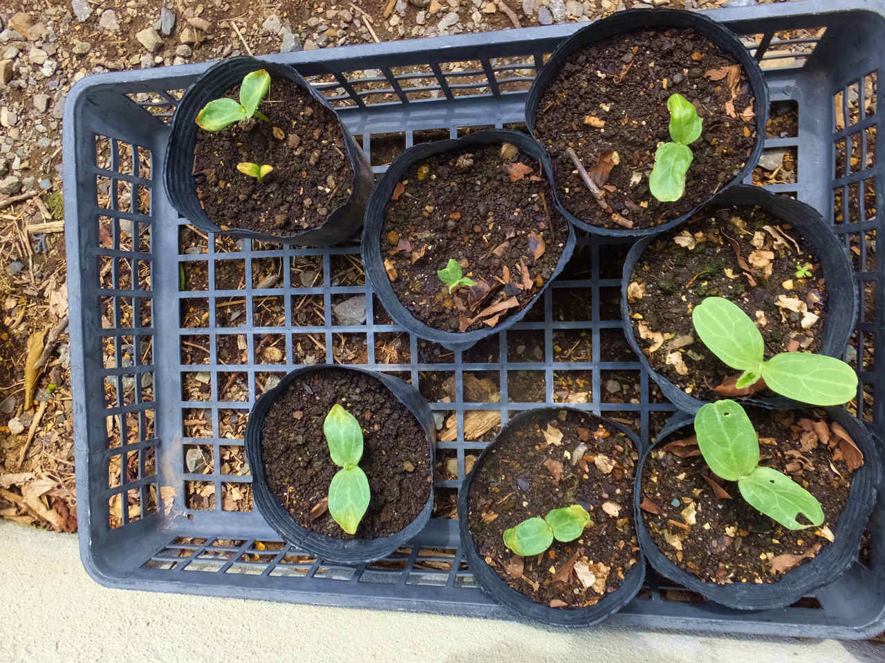 また、本日定植して気が付いたが、大ヒョウタンのH26年度かH25年度のどちらかの種が2つほど発芽していた。