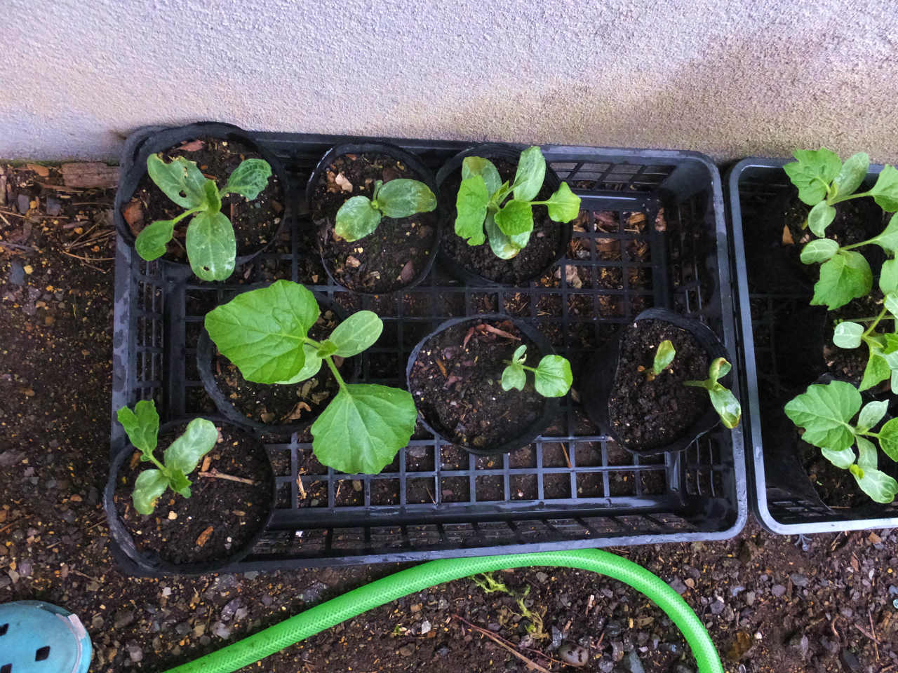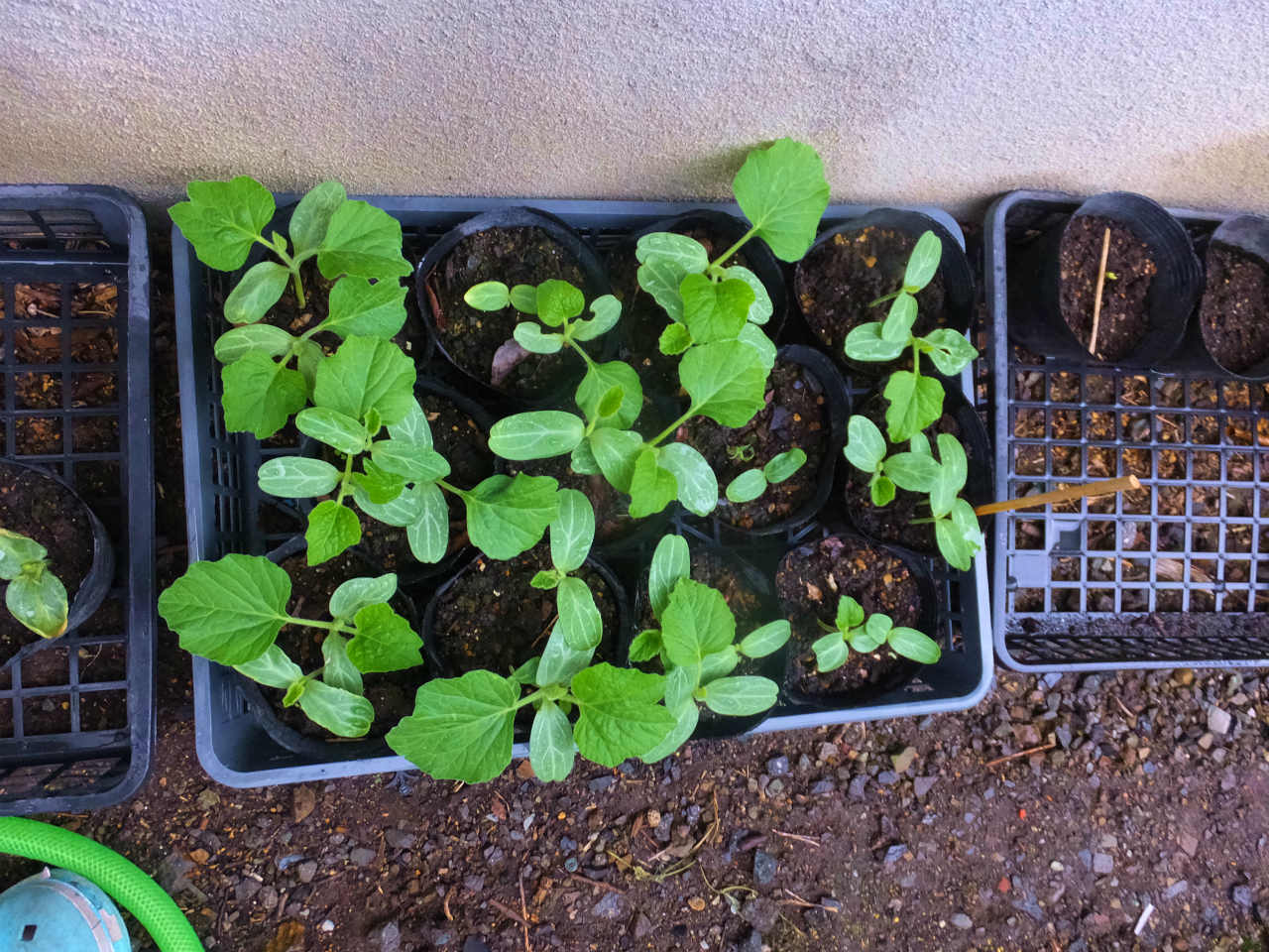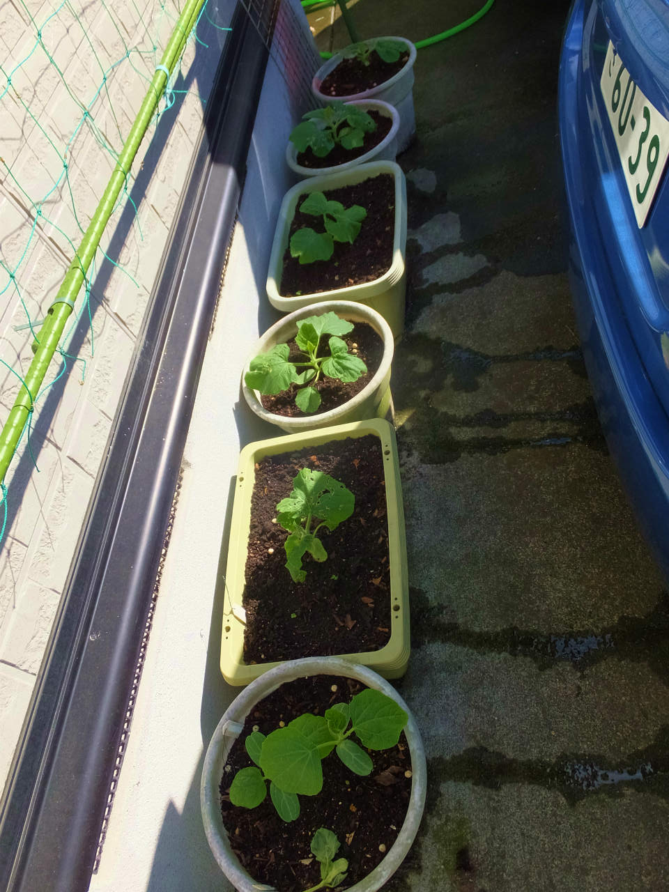 また、本日定植して気が付いたが、大ヒョウタンのH26年度かH25年度のどちらかの種が2つほど発芽していた。