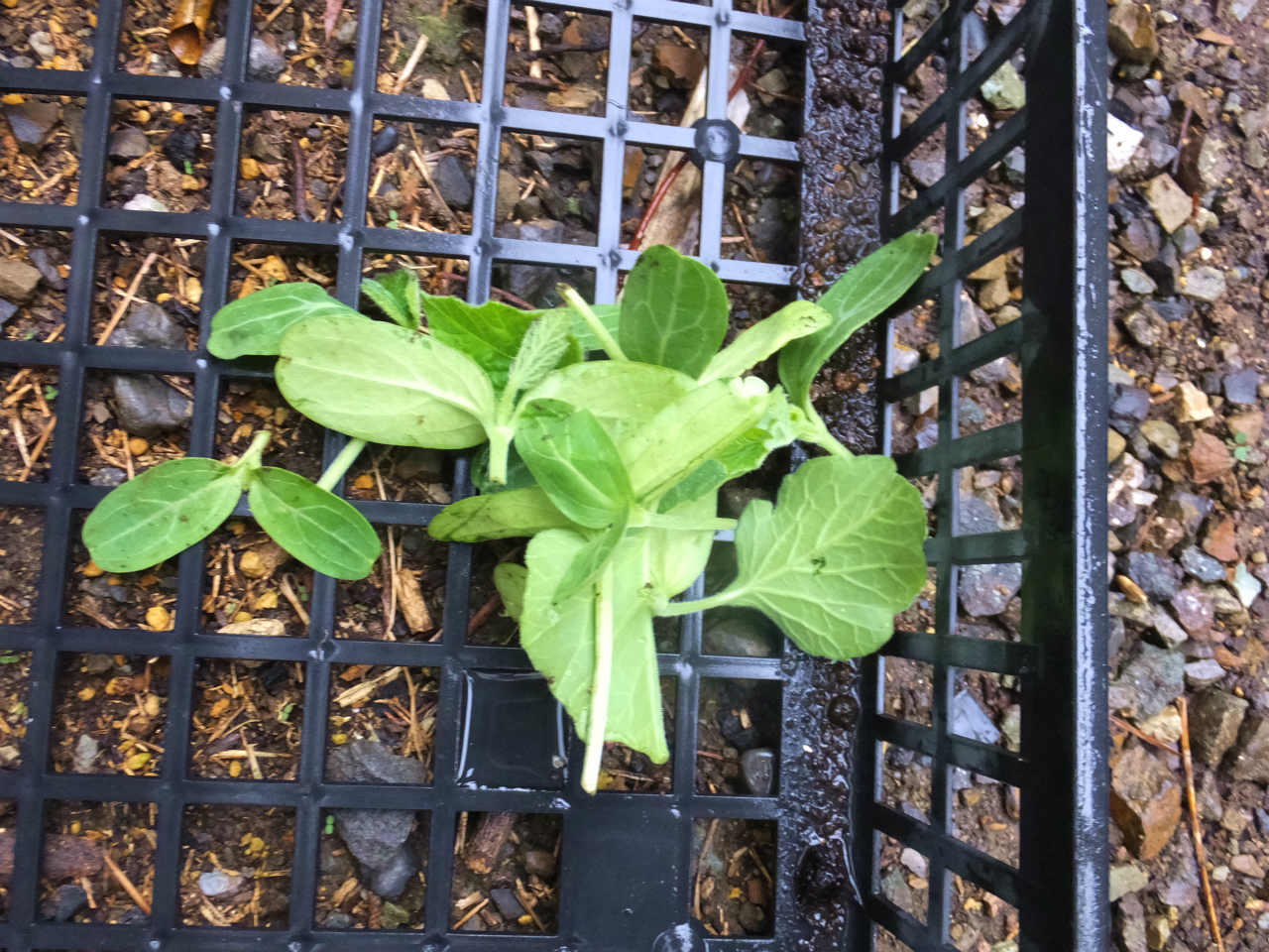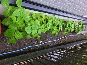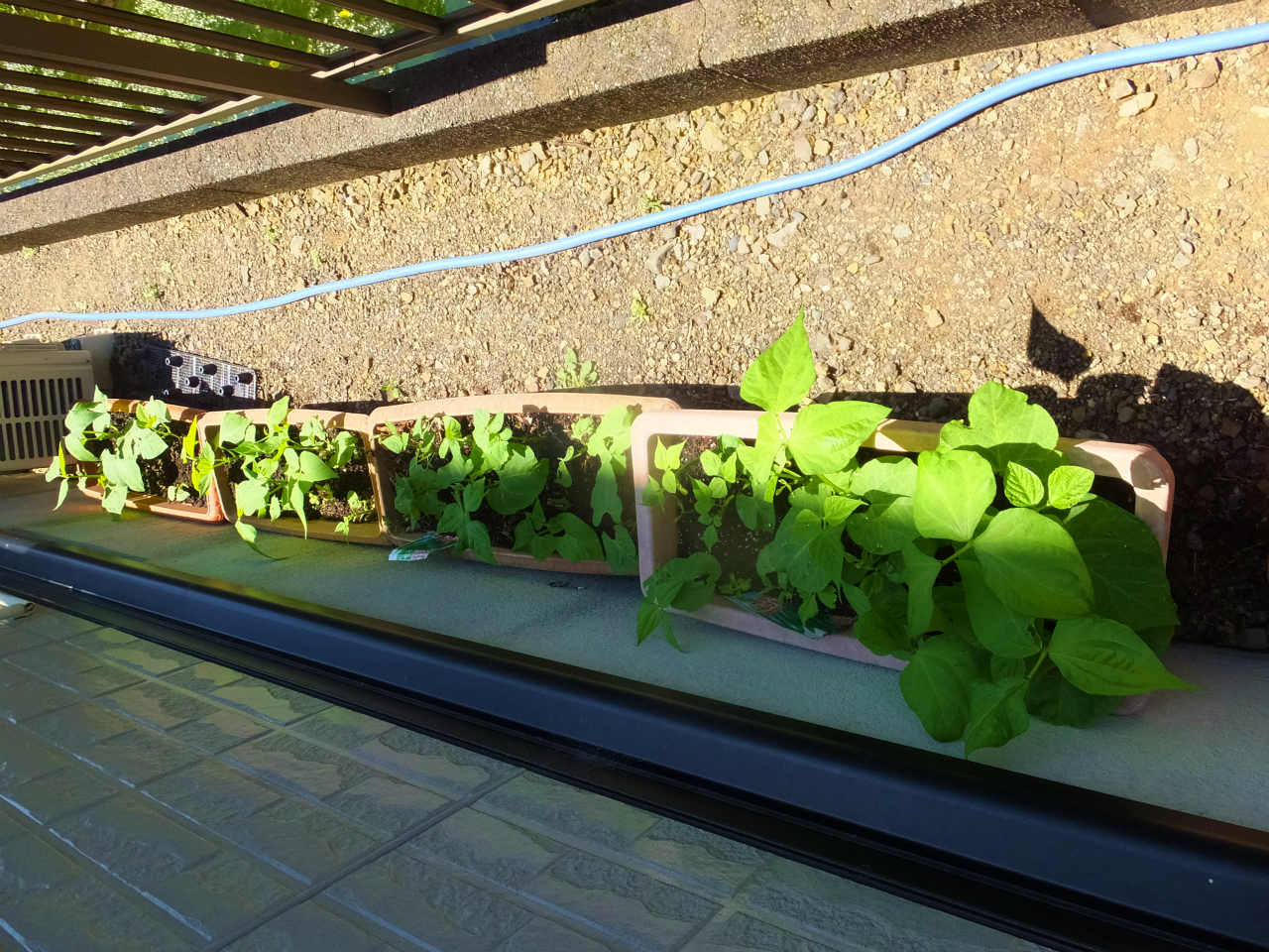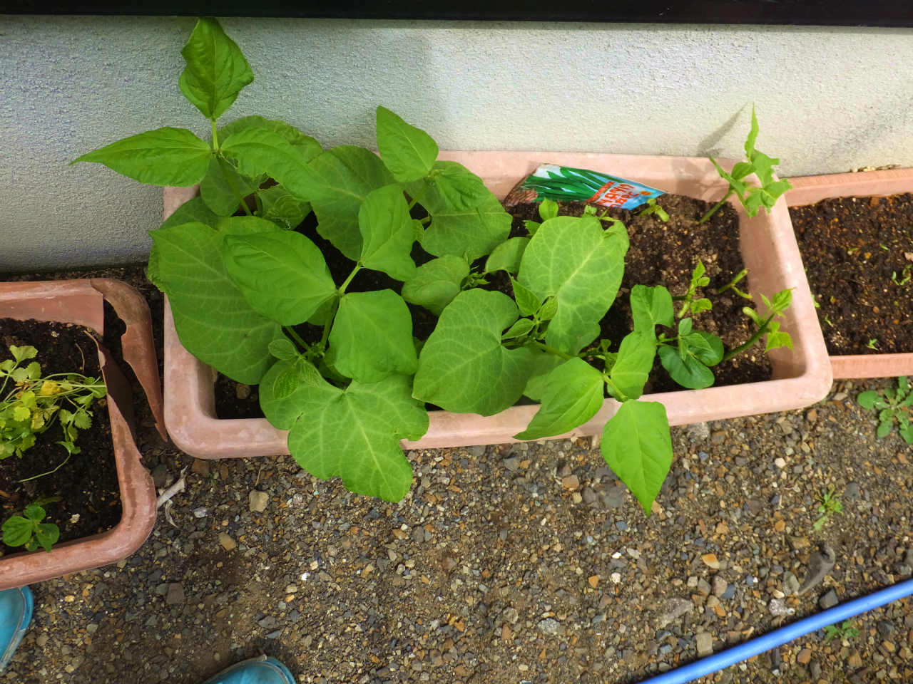プランターを処分するために、インゲンの苗を他のプランターに移植した。