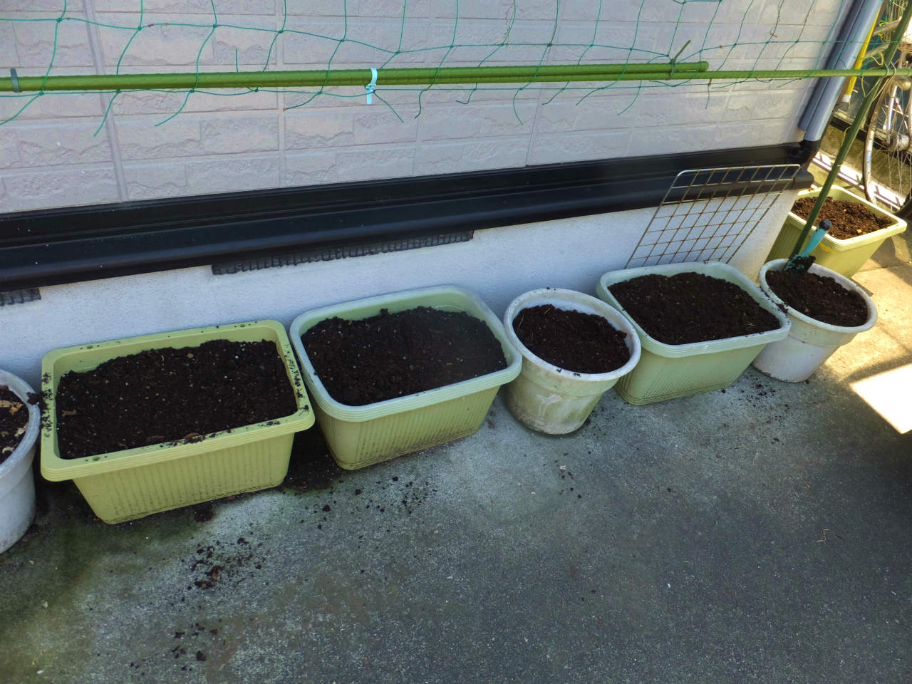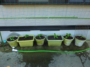 こちらは、大ヒョウタンを1鉢、千成を4鉢と空いているプランターに1鉢を栽培する予定である。