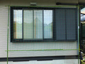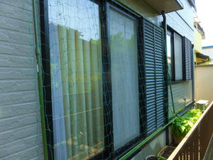2階のバルコニーはヒョウタン栽培前に購入した遮光シートで乗り切ることにする。 -