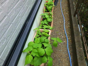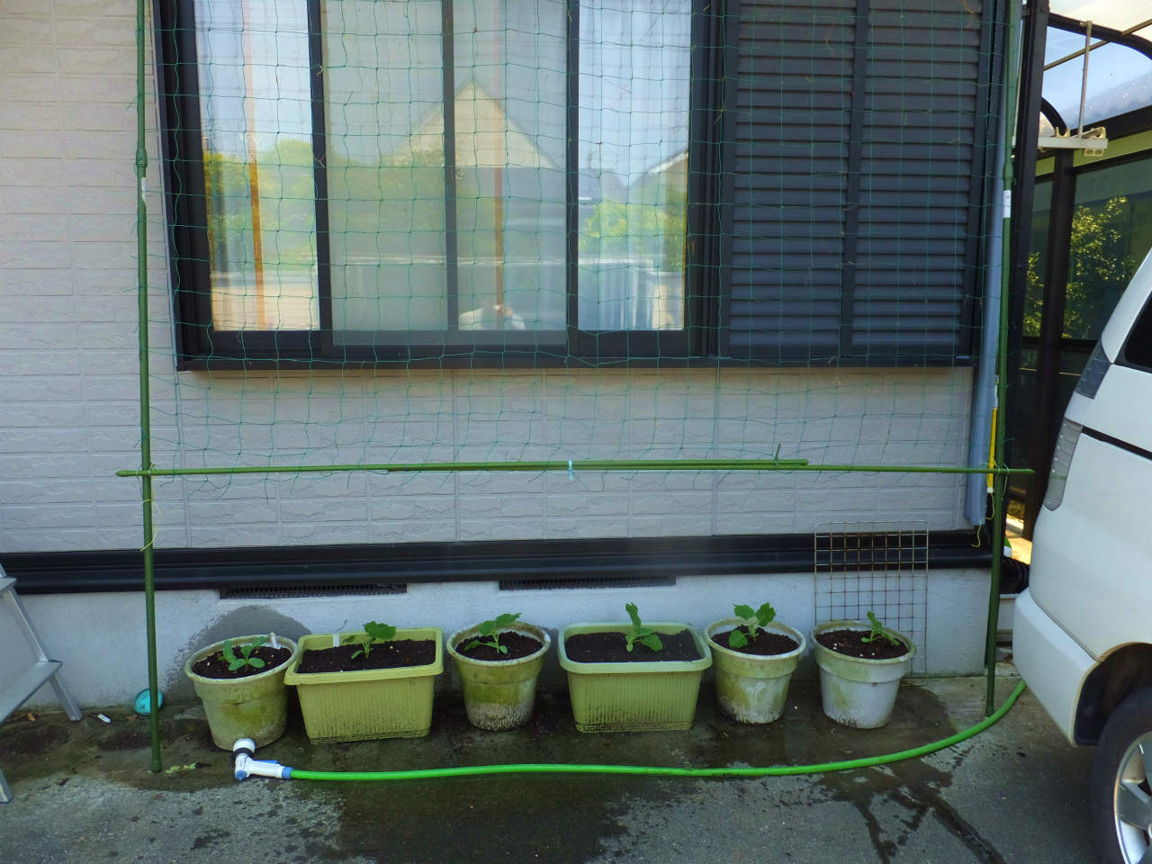 今年初めて南側の一階の掃出しの窓がある場所でグリーンカーテンをする。