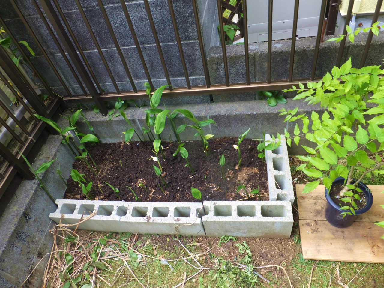 地下茎を切断し、土を間引いて再度ブロックを置いた。