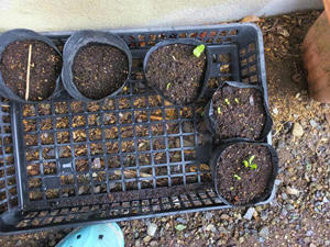 ヒョウタンの種の発芽テスト2017/05/07ヒョウタンの種を試験的に撒いて1週間がたった。