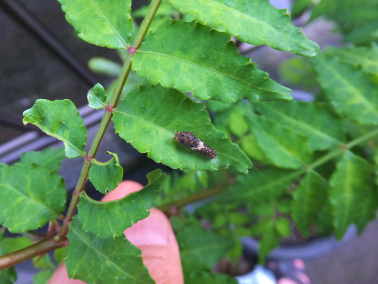 葉の裏側を確認すると全長1mmから3mm程度のイモムシを発見した。