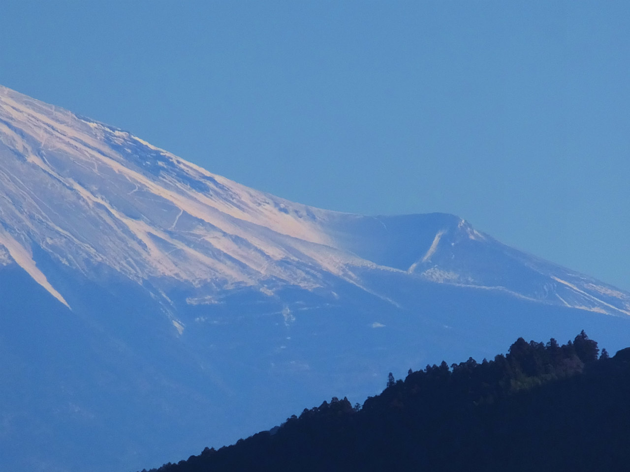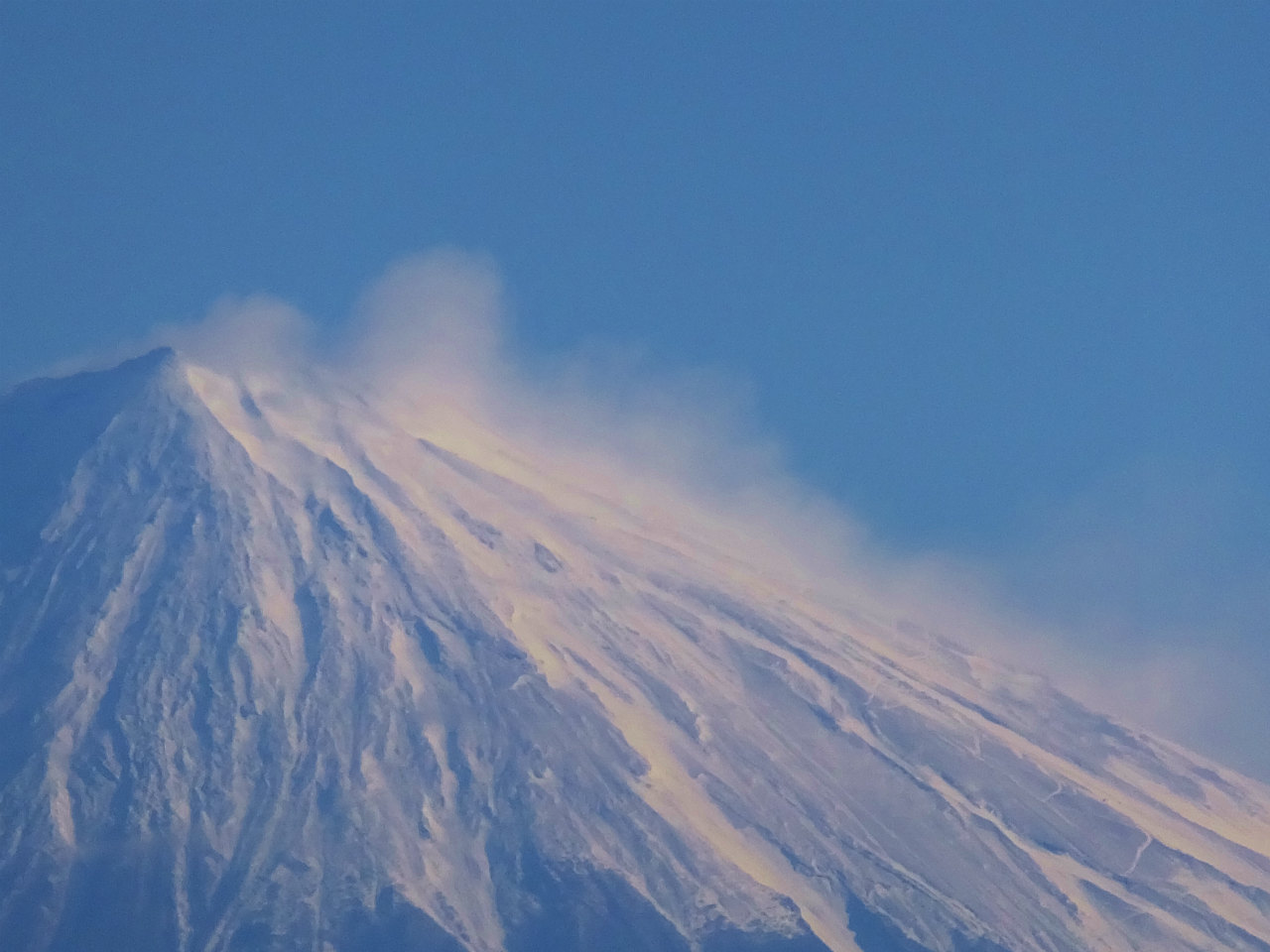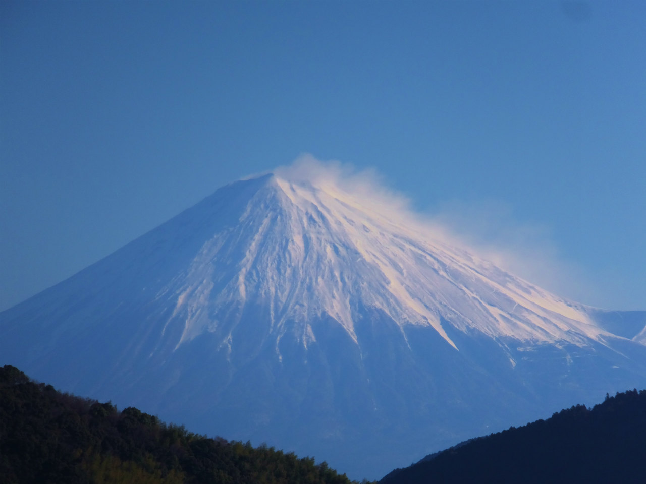今日の富士山は風もなく、きれいに見れているが昨日はすごかった。風で雪が舞いあがっているのが藤枝からも確認できた。